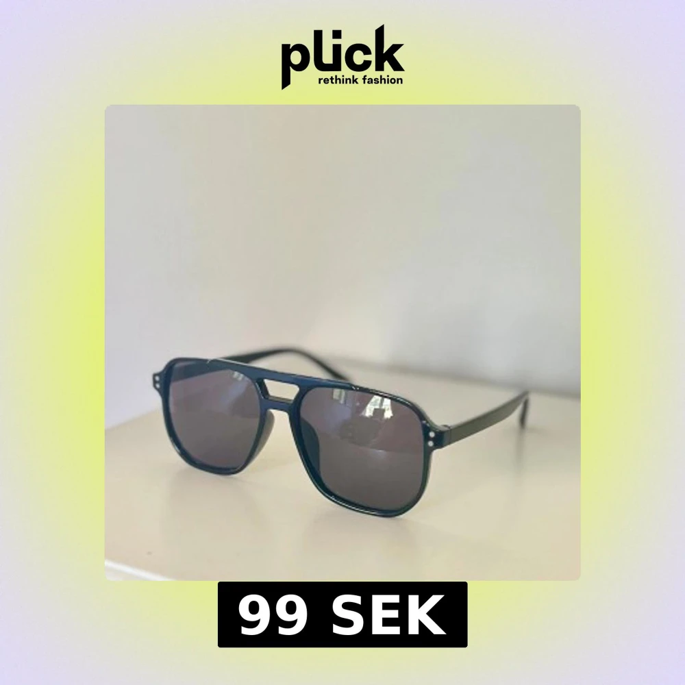Snygga solglasögon med svarta pilotbågar och mörka glas. Klassisk aviator-inspirerad form med dubbla nitar vid sidorna och en cool brygga över näsan. Ramen är i plast och glasen är mörkt tonade, perfekta för soliga dagar☀️