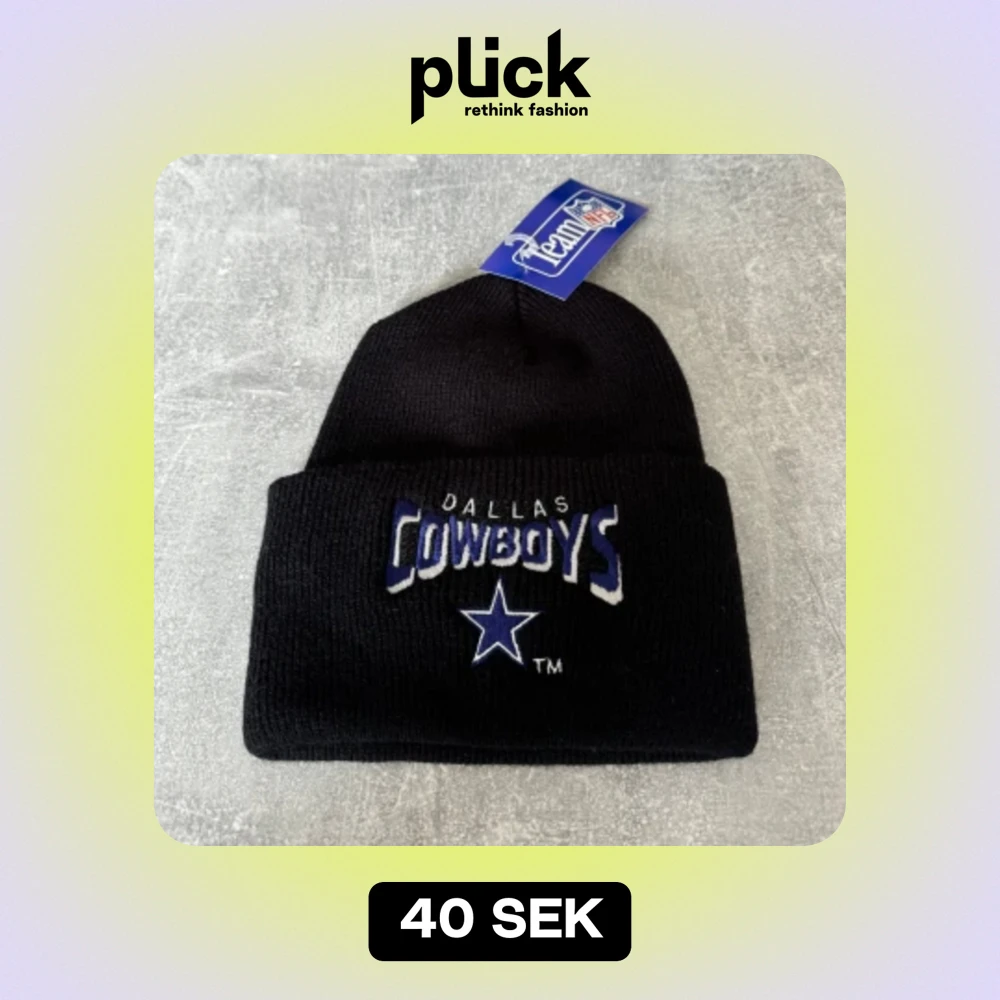 Svart mössa med Dallas Cowboys-logotypen. Mössan är ny och oanvänd, med alla originaletiketter.