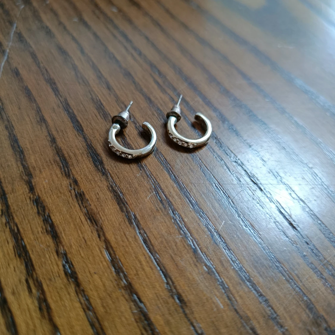 Snygga små guldiga örhängen i halvcirkel-form med glittrande stenar på framsidan. Perfekta för att ge din look lite extra bling och passar till både chill och mer uppklädda outfits. Lätta att bära och stilrena.