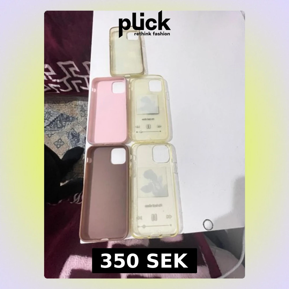 Snygga och trendiga skal till iPhone 11, 5-pack. Blandade färger och motiv, inklusive 'No bad vibes' och collage-design. Skalen är i begagnat skick med viss missfärgning och slitage, men skyddar mobilen effektivt. Perfekt för dig som vill variera utseendet på din iPhone.