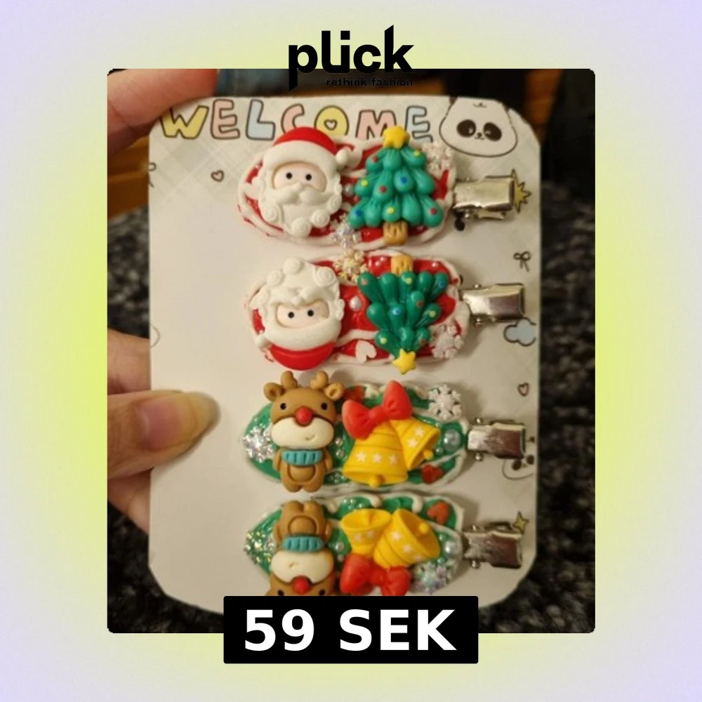 Två par hårspännen med jultema. Varje spänne har en unik design med julmotiv Perfekt för en unik present! Längd 6 cm