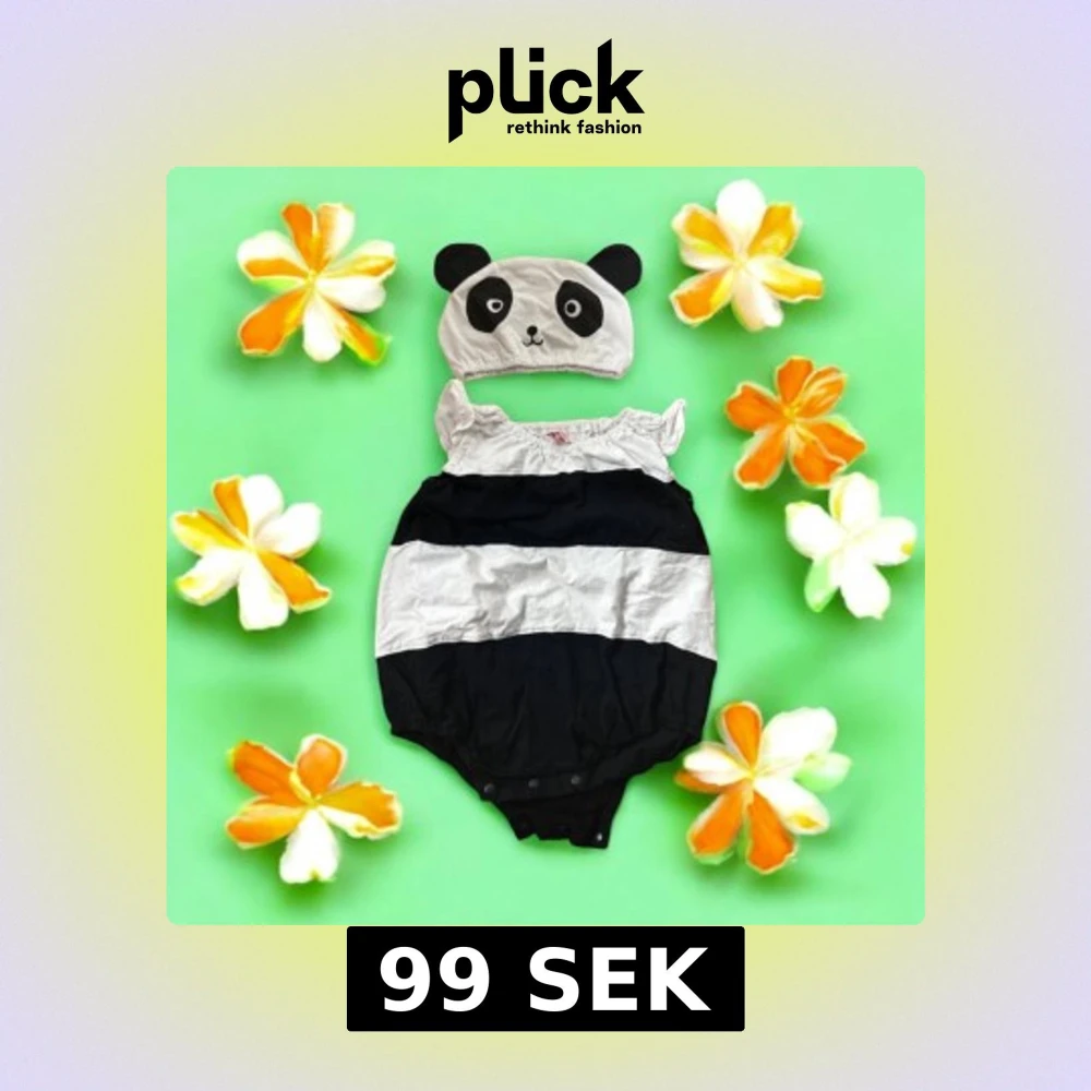 En gullig mössa för barn med panda-design. Mössan är vit med svarta detaljer som formar pandaansiktet och öronen. Perfekt för att ge en lekfull touch till barnets outfit. 6-12 månader