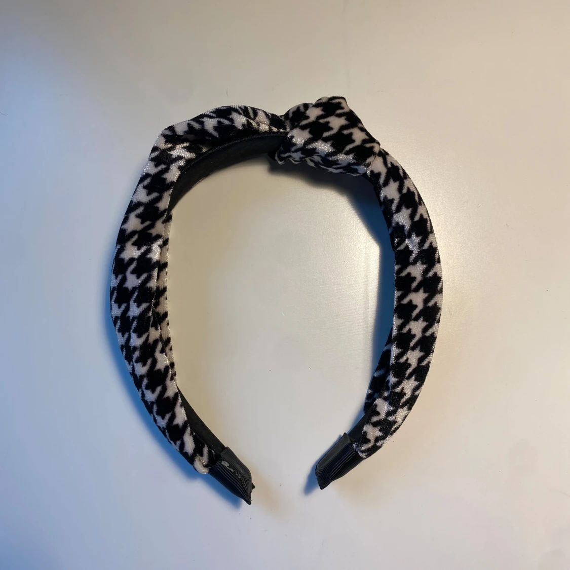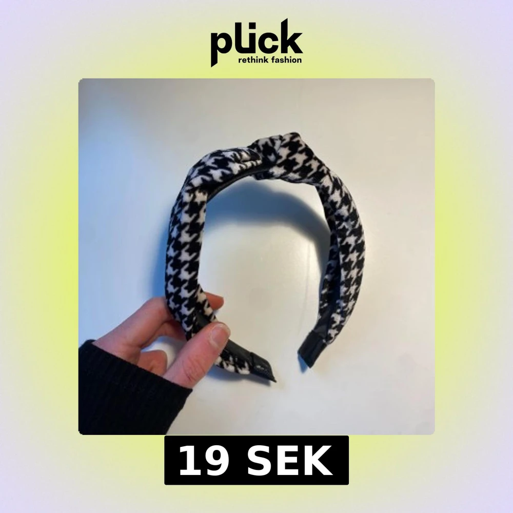 Snyggt diadem i svartvitt med klassiskt hundtandsmönster. Använt typ 2 gånger. Har en knutdetalj på toppen.