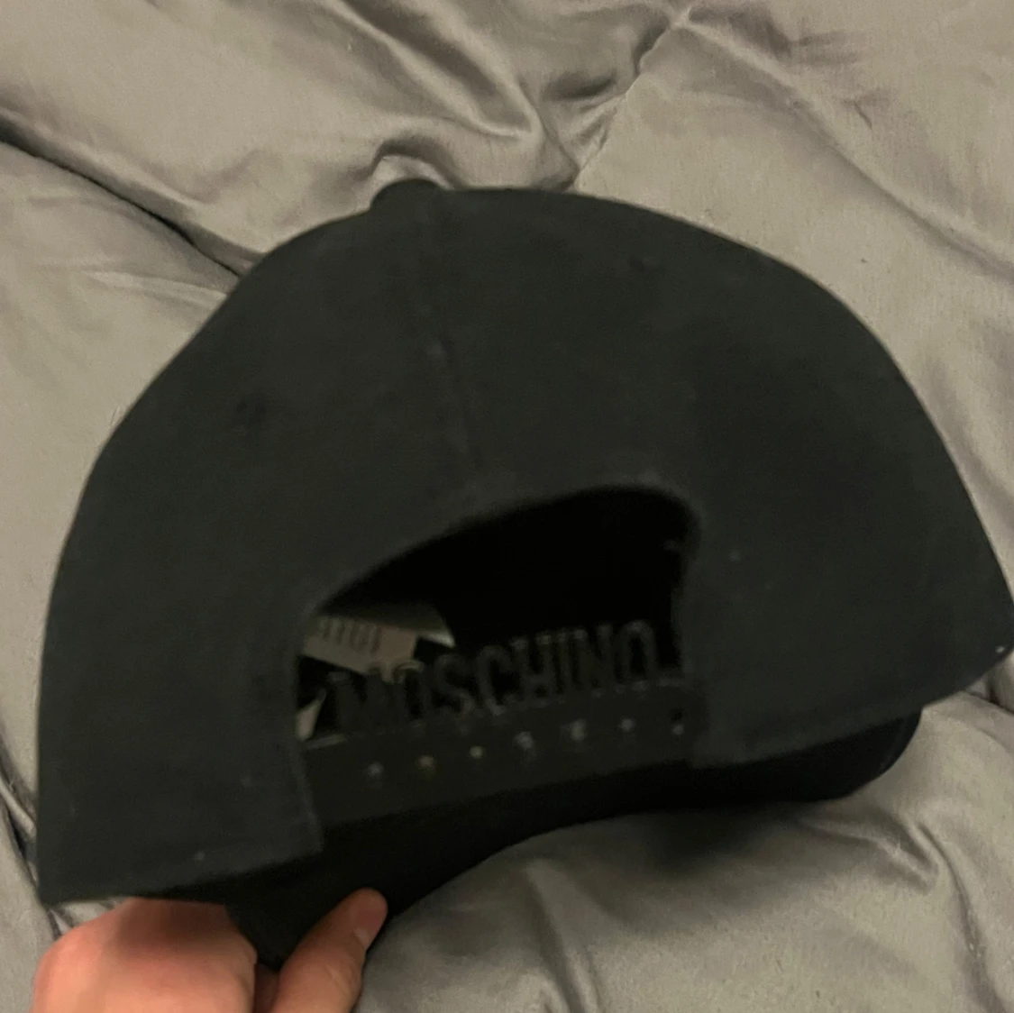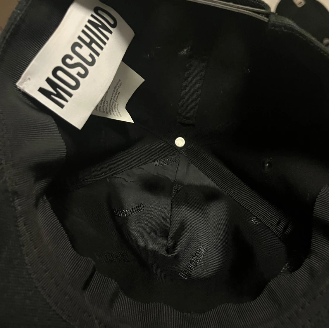 Snygg svart keps från Moschino med broderad logga i vitt framtill. Kepsen har en justerbar rem baktill för perfekt passform. Perfekt för både vardag och festliga tillfällen. En stilren accessoar som passar till det mesta!