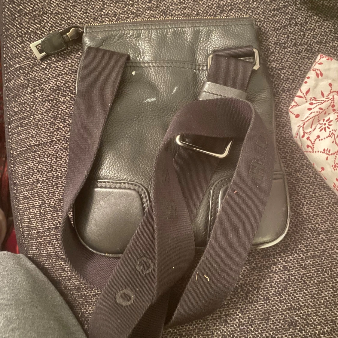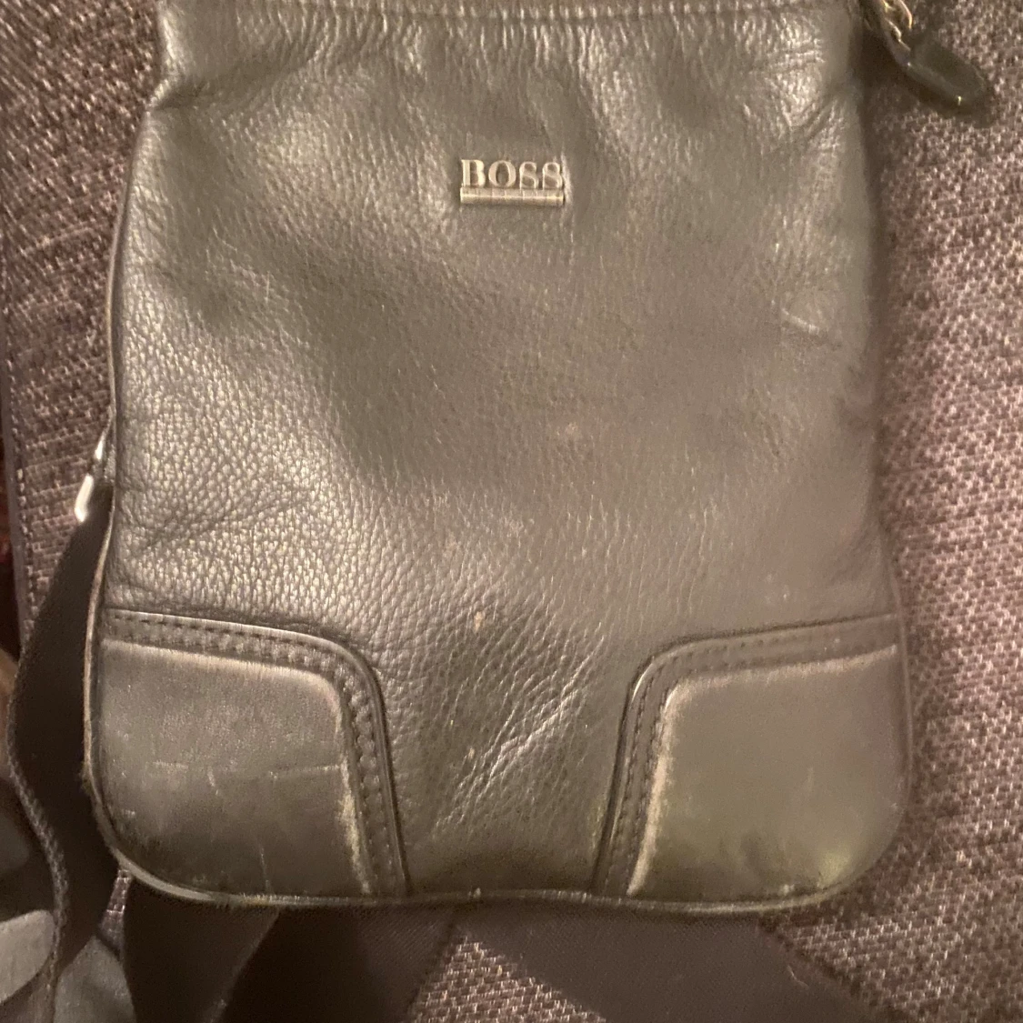 En läderväska för men i okej skick av kvalitet märket Hugo boss och det finns även både fler fickor och en medalplatta med loggan på två olika platser i väskan den går å snygga till utan att betala mer än å i ordning ställa den men läder nästan inget att klaga på normal slitage.