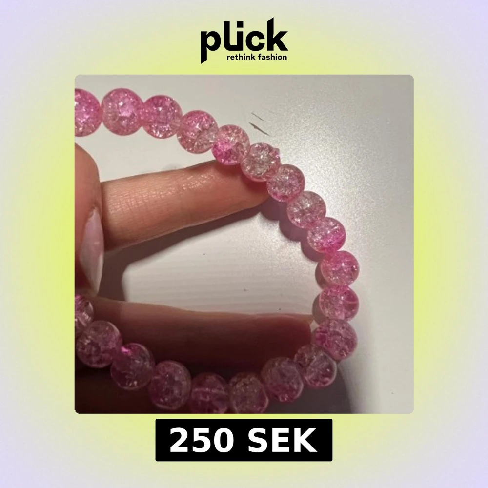 Snyggt rosa pärlarmband med genomskinliga och glittriga pärlor. Armbandet har en unik detalj i form av en rosa pärla med ett öga. Perfekt för att ge en färgglad touch till din outfit.kristall