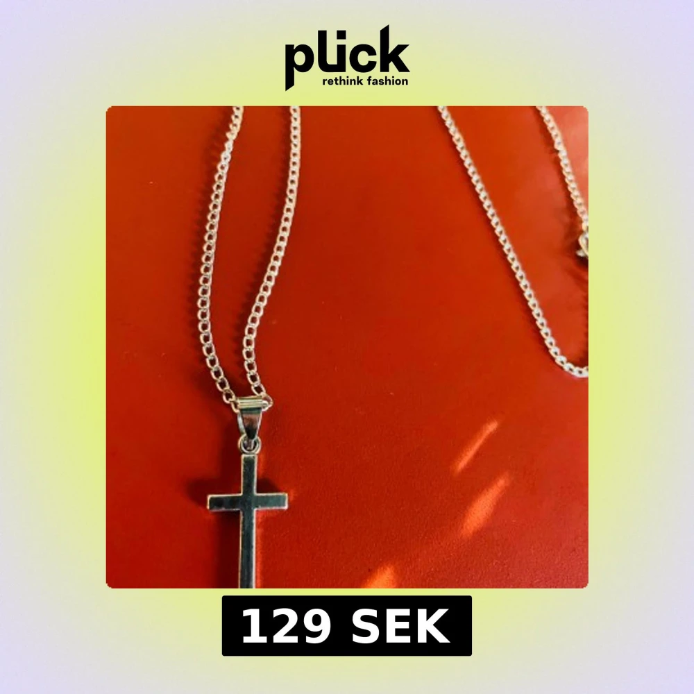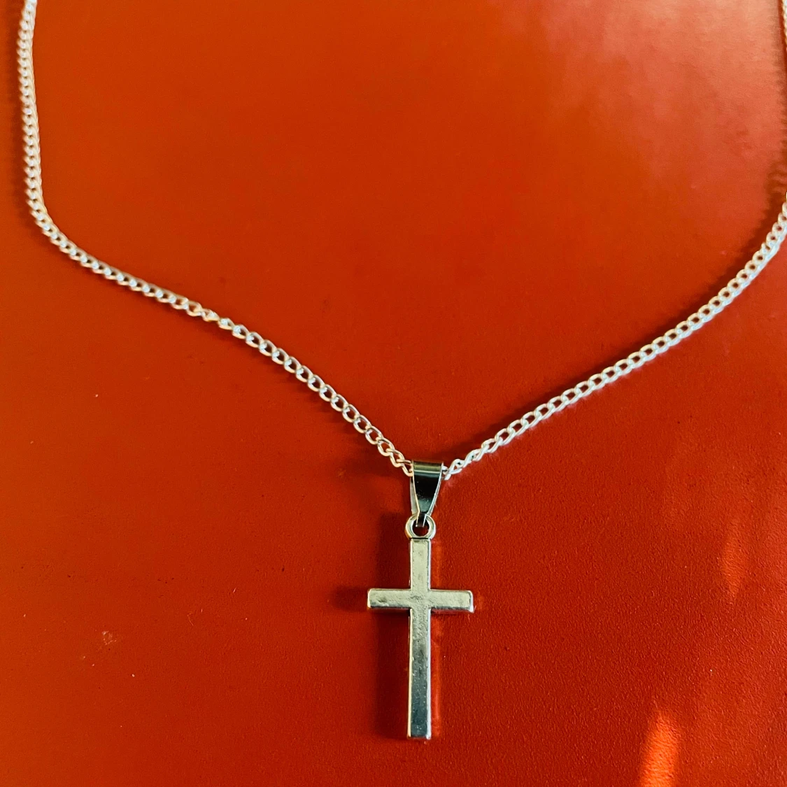 Stilrent halsband i silverfärg med en klassisk korsberlock. Kedjan är tunn och har ett enkelt men snyggt uttryck. Perfekt för dig som gillar minimalistiska smycken med symbolisk touch.