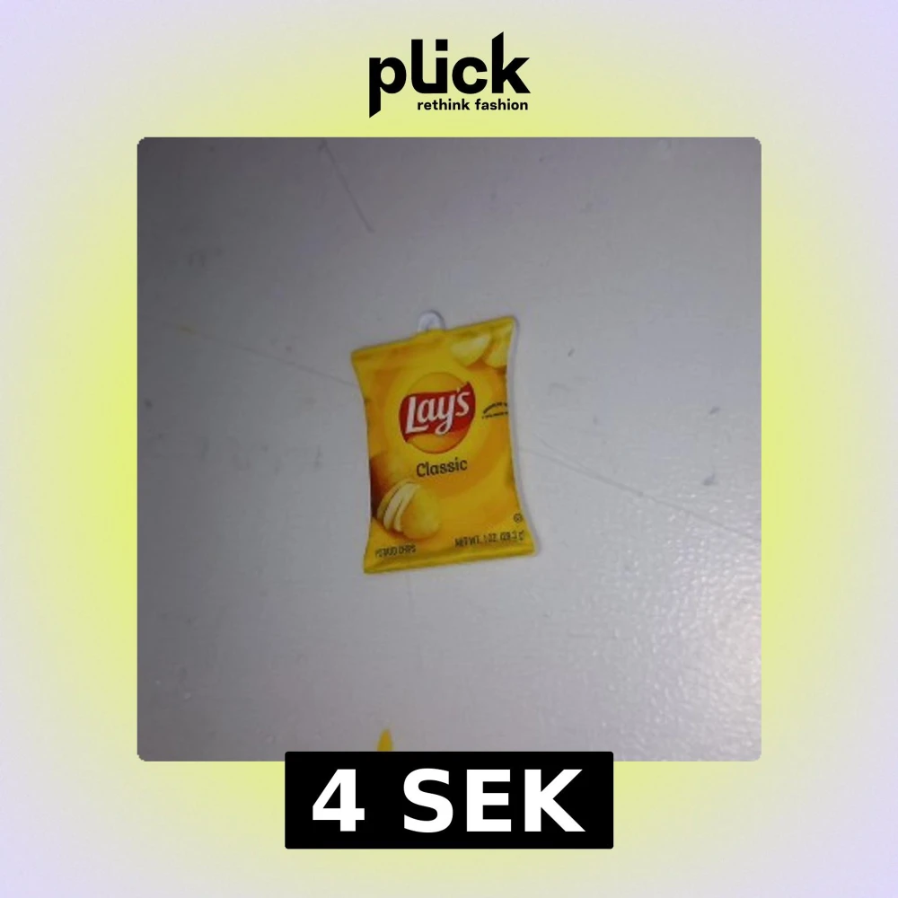 Roligt halsbandshänge som ser ut som en Lay's Classic chips-påse. Perfekt accessoar för dig som älskar snacks och vill sticka ut. Hängsmycket är i plast och har en gul färg med Lay's logga och chipsmotiv.