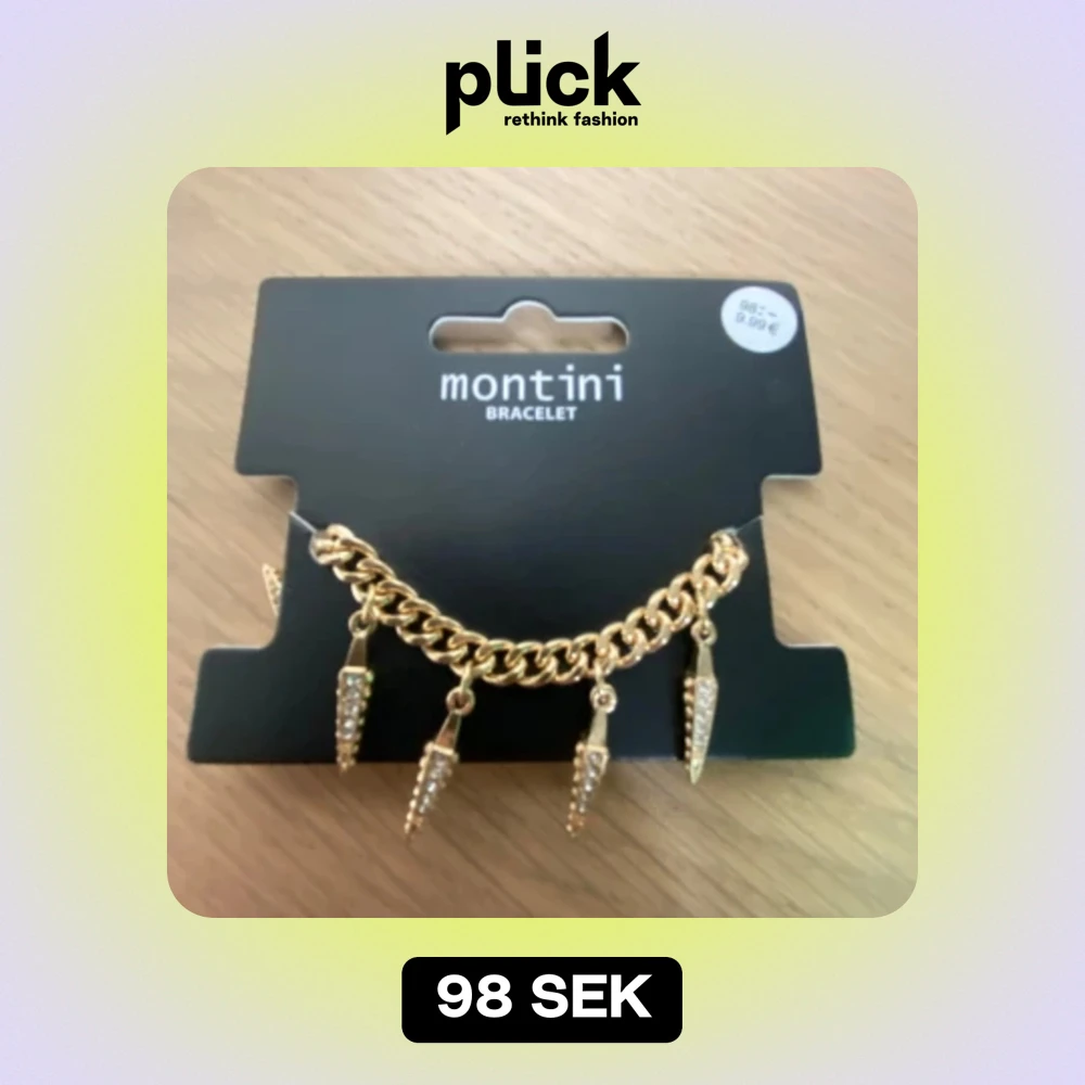 Snyggt guldarmband från Montini med coola hängande detaljer som ser ut som små spikar. Perfekt för att ge din outfit en edgy touch. Armbandet är i en kedjedesign och har en glittrig finish på detaljerna. Passar perfekt till fest eller en utekväll!