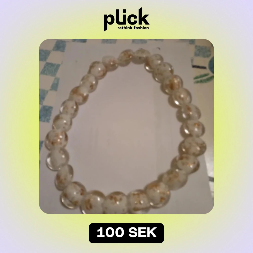 Vackert halsband med glaspärlor med Guldglitter samt töjbar tråd .Egen design .