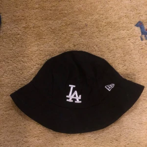 Snygg svart bucket hat från New Era med LA-broderi framtill. Perfekt för en avslappnad stil och skydd mot solen. Hatten har en bred kant och är tillverkad i ett bekvämt material.