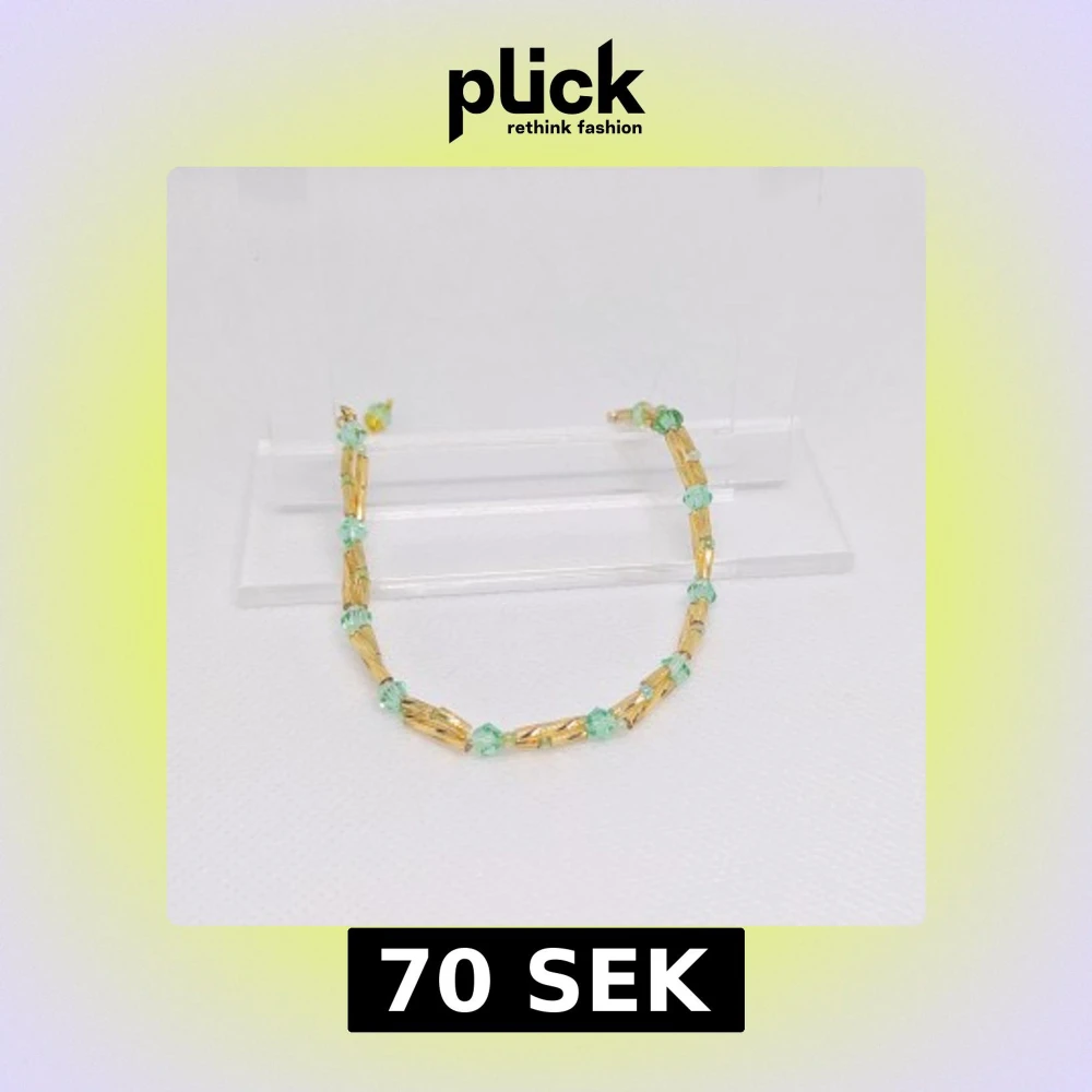 Säljer ett grönt armband med guldfärgade stavar. Perfekt för att lägga till en färgklick till din outfit. Armbanden har en fin kedja och är lätta att matcha med andra smycken. OBS! Denna annons gäller endast det gröna armbandet.