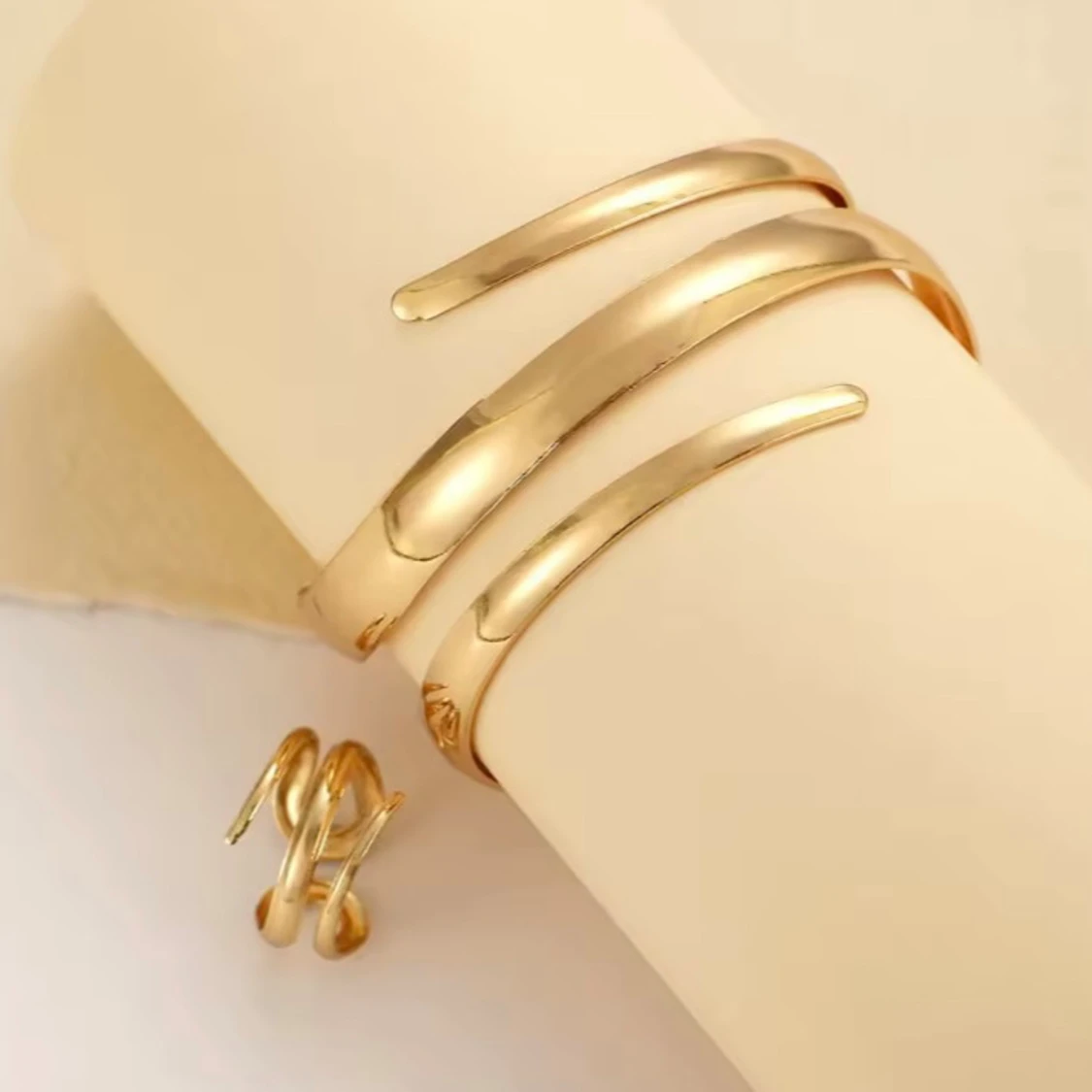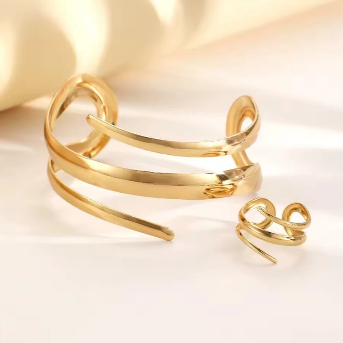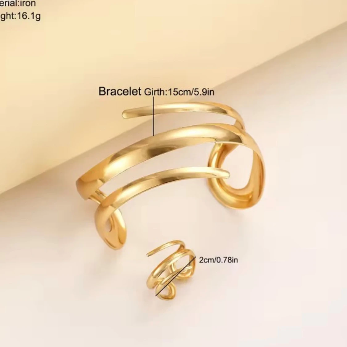 Unikt set Geometriska droppformade detaljer och en unik, vriden design som sticker ut. Perfekt för både vardag och fest – ett statement-smycke som lyfter varje look. 🌟 Rostfritt stål, hållbart & skinande 🌟 Geometrisk droppdesign, modern och unik 🌟 Justerbar öppning för bekväm passform Skapa en elegant och trendig stil med detta stilrena set 🎁💫