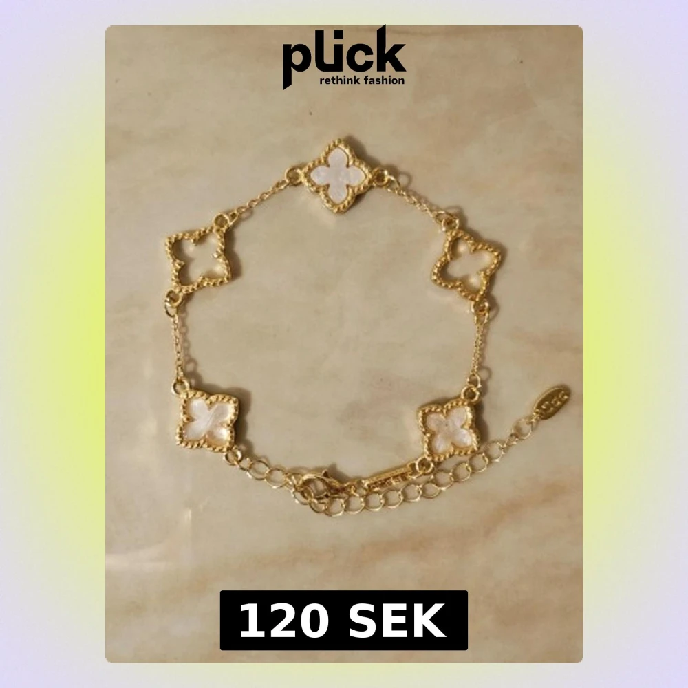 Guldfärgat armband med vita klöver✨️🤍