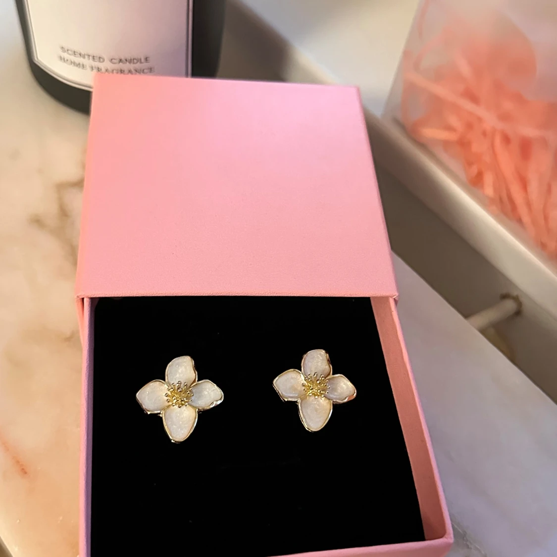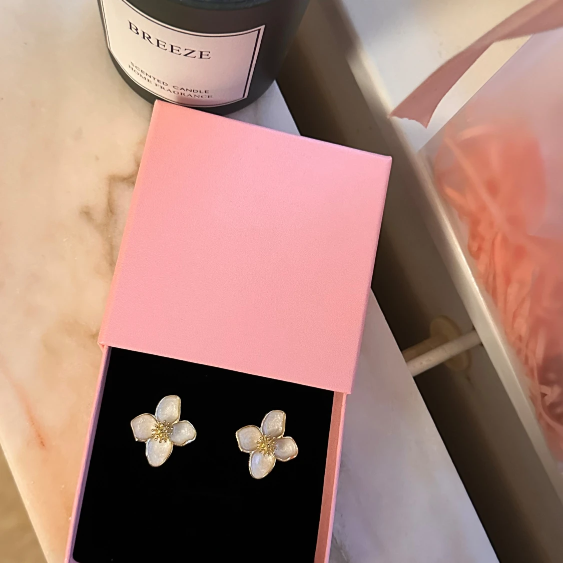 Super söta vita örhängen i blomform🌸 Helt nya såklart. Asken ingår ej
