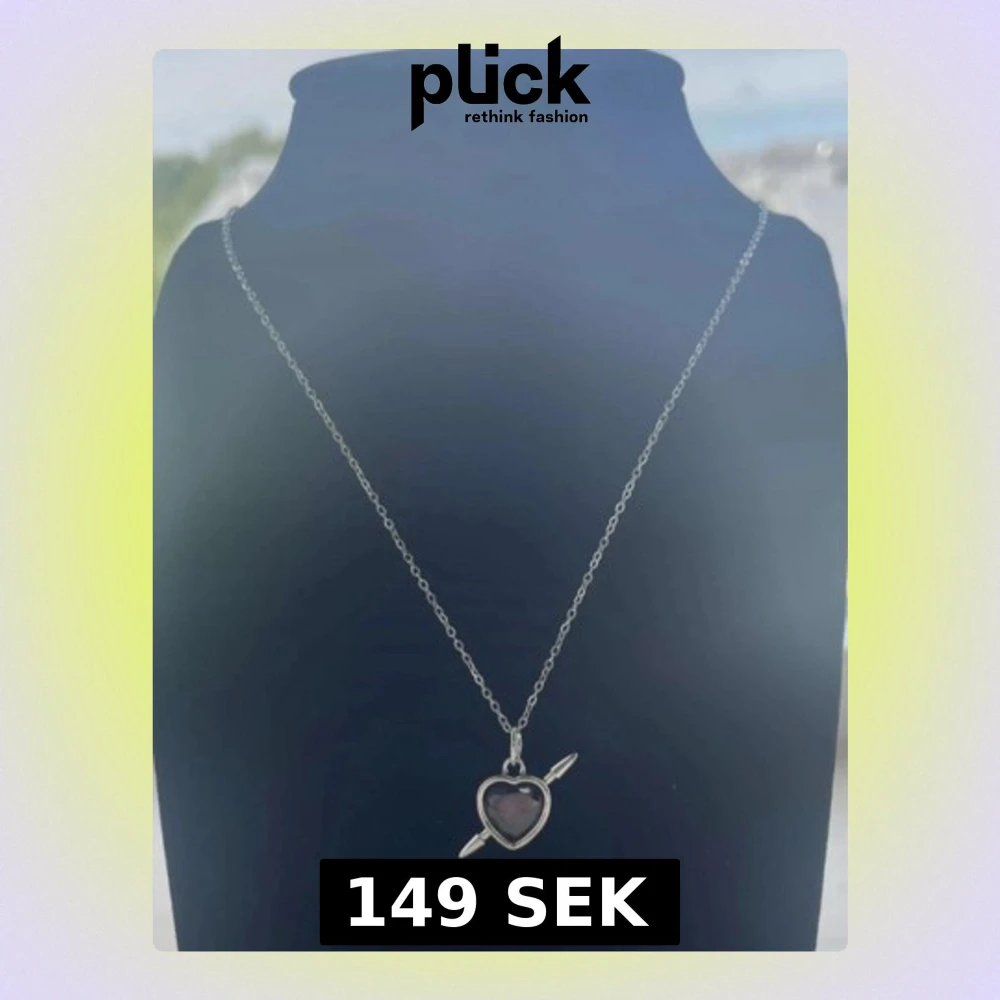 Snyggt silverhalsband med ett hjärtformat hänge som har en pil genom sig. Kedjan är tunn och stilren, perfekt för att ge din look lite extra edge. Hänget har en mörkare ton i mitten som ger cool kontrast mot det blanka silvret.