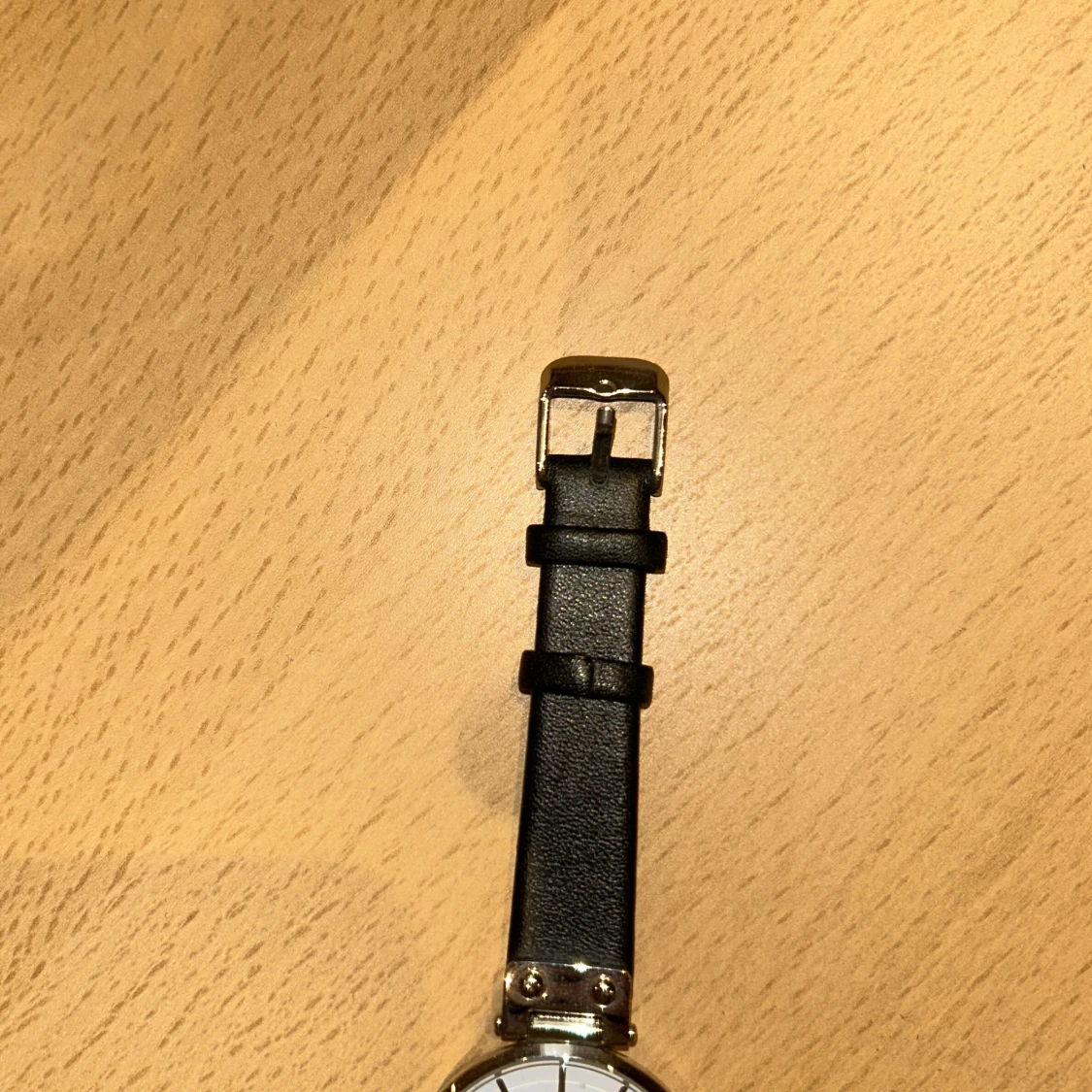 Stilren klocka från Mockberg med rund vit urtavla och minimalistiska svarta markeringar. Klockan har ett smalt svart läderband och silverfärgade detaljer vid fästena. Perfekt accessoar för en clean och klassisk look.