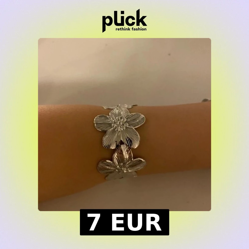 Stilrent armband i silverfärg med stora, detaljerade blommor runt hela bandet. Blommorna har fina räfflade detaljer som ger extra glans och en cool look. Perfekt accessoar för dig som vill sticka ut med något unikt och trendigt.