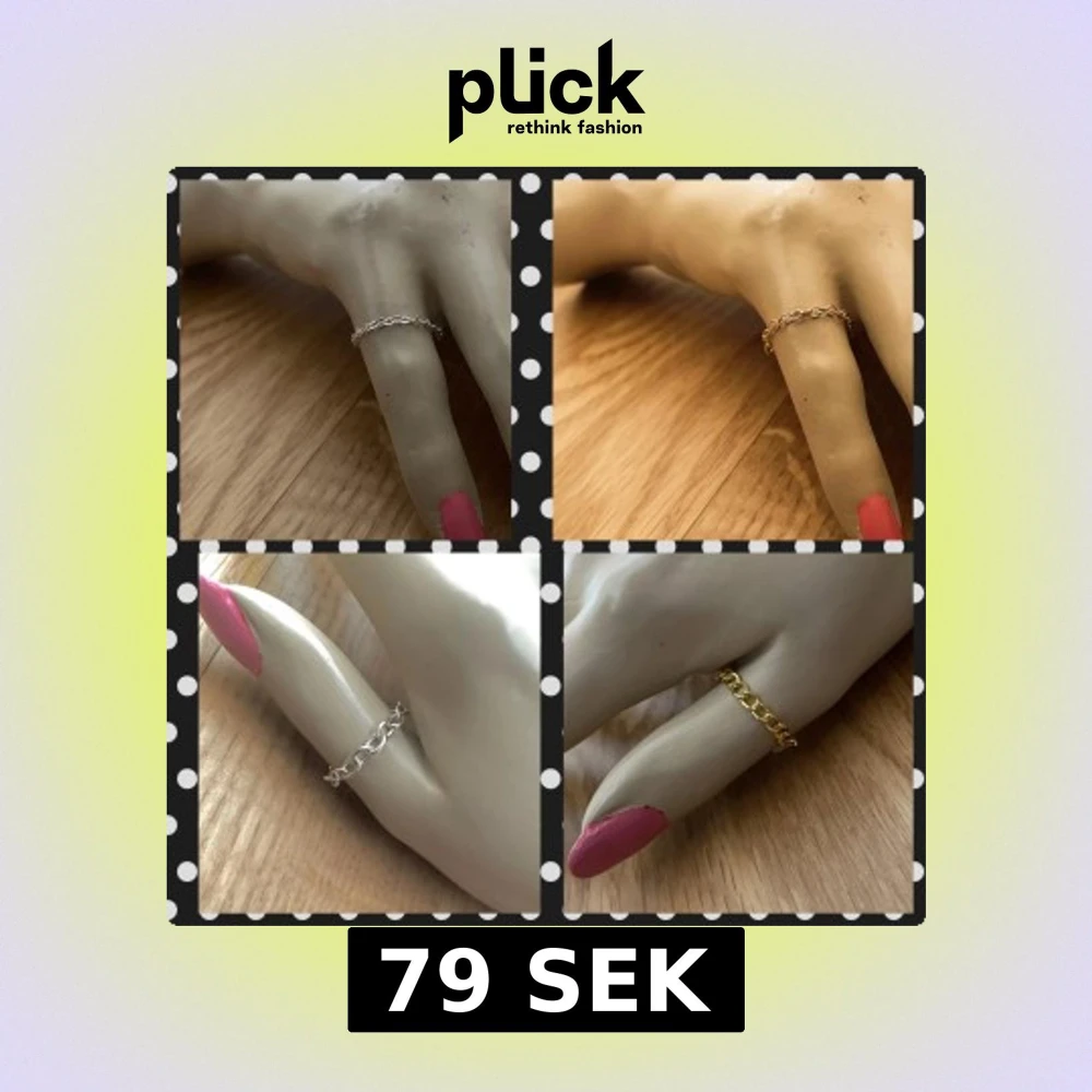 Justerbara bred eller tunn och stilrena kedjeringar i både silver och guld. Ringarna har en enkel kedjedesign som ger en cool och modern vibe. Perfekt för dig som gillar minimalistiska smycken och vill mixa olika metaller på fingrarna. Gäller 1 st.