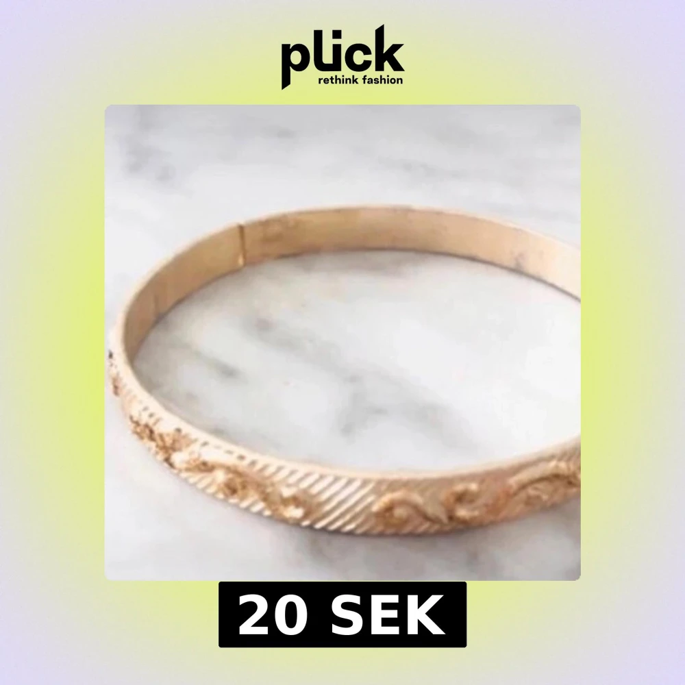 Snyggt guldigt armband med ett diskret, snirkligt mönster längs kanten. Armbandet har en rund form och passar perfekt för dig som gillar stilrena accessoarer med lite extra detalj. Perfekt att kombinera med andra smycken för en personlig look.