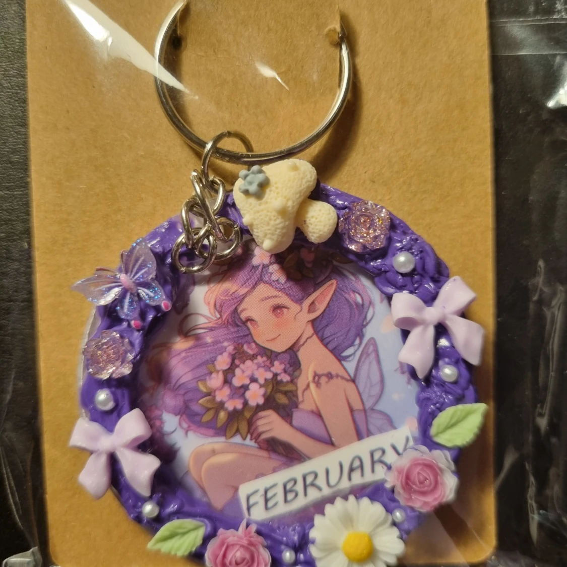 Säljer handgjord nyckelring som gjorde av akryl, krämlim och pärlor. Perfekt som en liten present eller accessoar