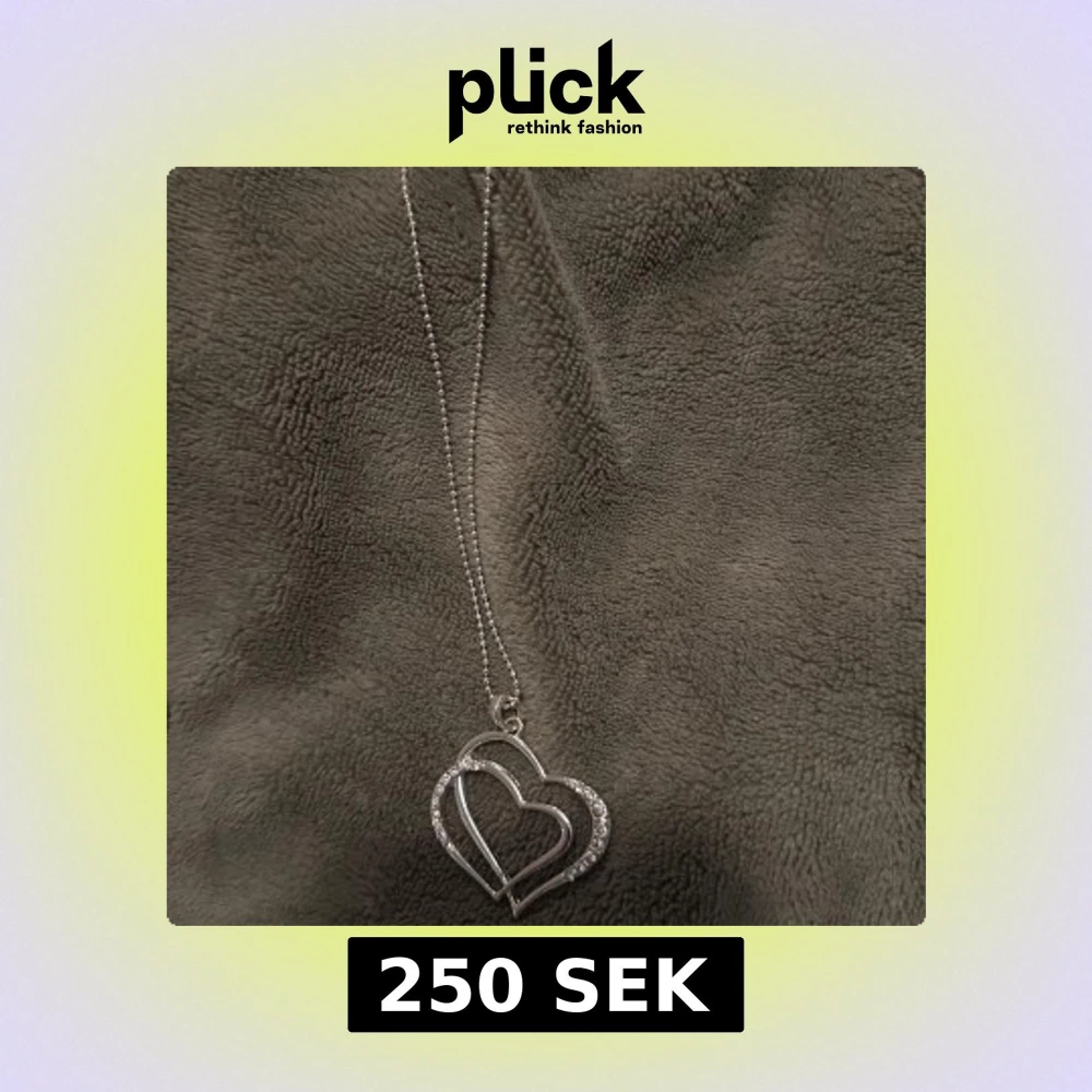 Elegant halsband med två sammanflätade hjärtan i silver. Det yttre hjärtat är dekorerat med glittrande stenar som ger en lyxig känsla. Perfekt för att ge en romantisk touch till din outfit.