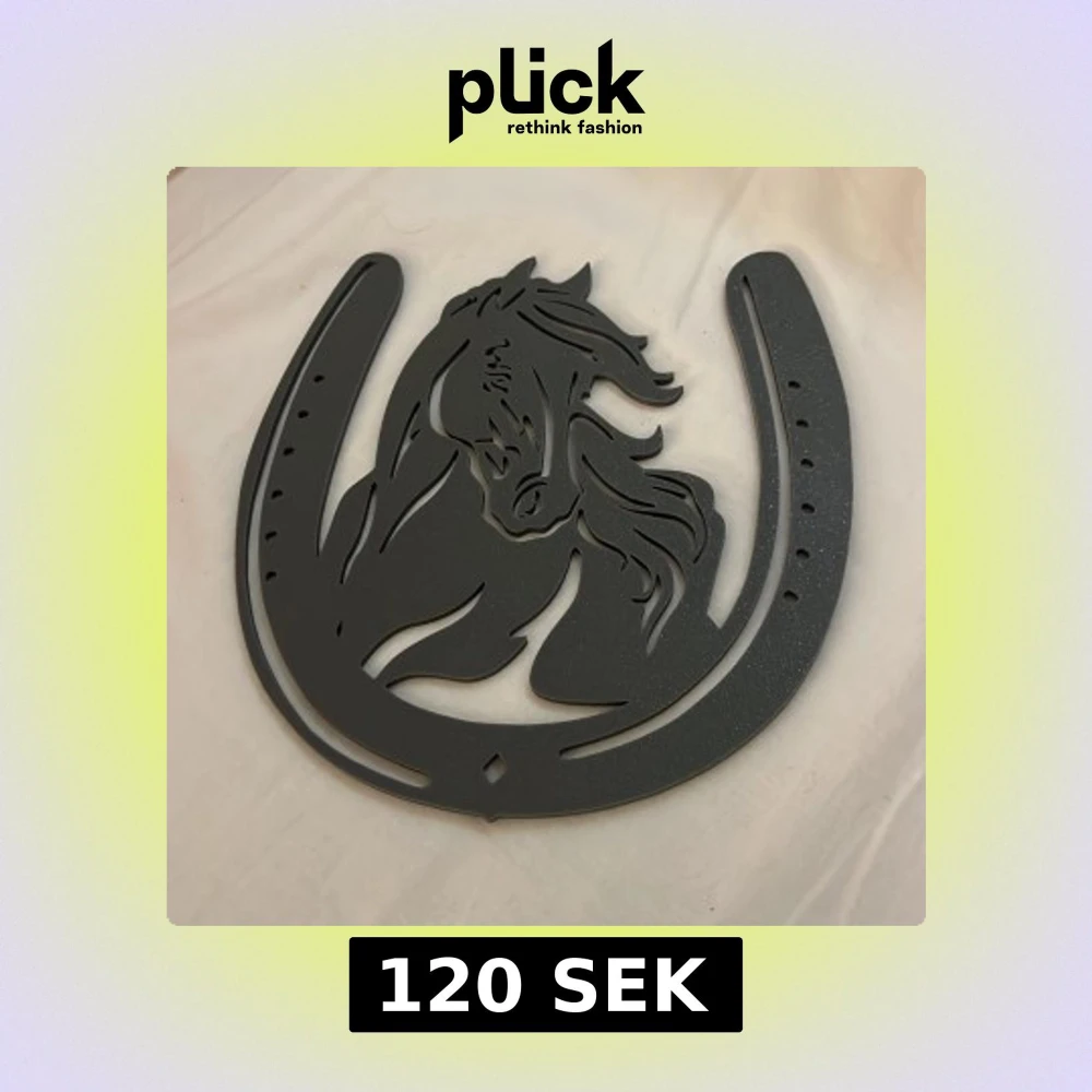 Snygg väggdekoration med motiv av en häst inuti en hästsko. Perfekt för dig som älskar hästar och vill ha en unik detalj i rummet. Har gjort den själv🩷