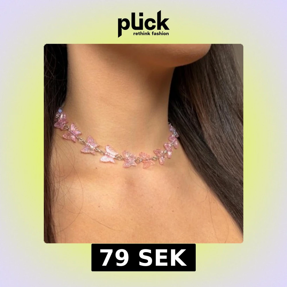 Säljer en superfin choker med små rosa fjärilar som sitter på en tunn silverfärgad kedja som jag gjort själv! Halsbandet har justerbar längd.