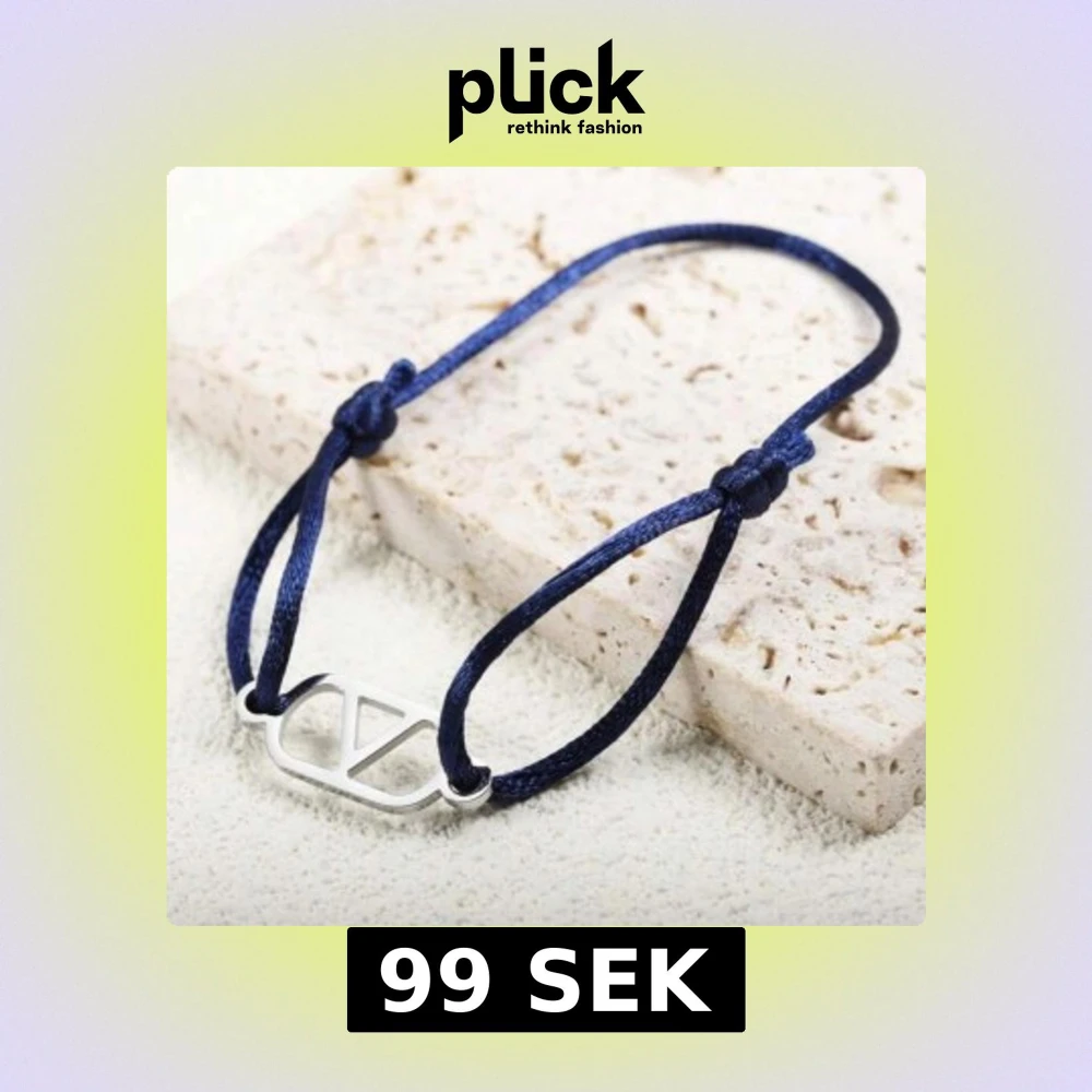 Snyggt armband med marinblått band och en stilren silverfärgad detalj i form av en geometrisk symbol. Justerbar storlek med knutar på sidorna, perfekt för att ge din outfit en cool touch.