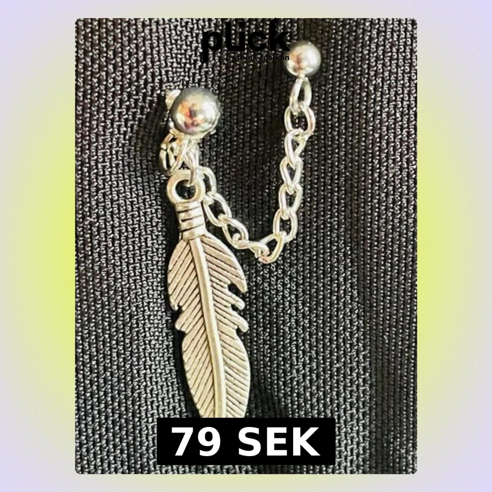 By prisförslag- 1 st Silvrigt dubbel örhänge med fjäder och kedja