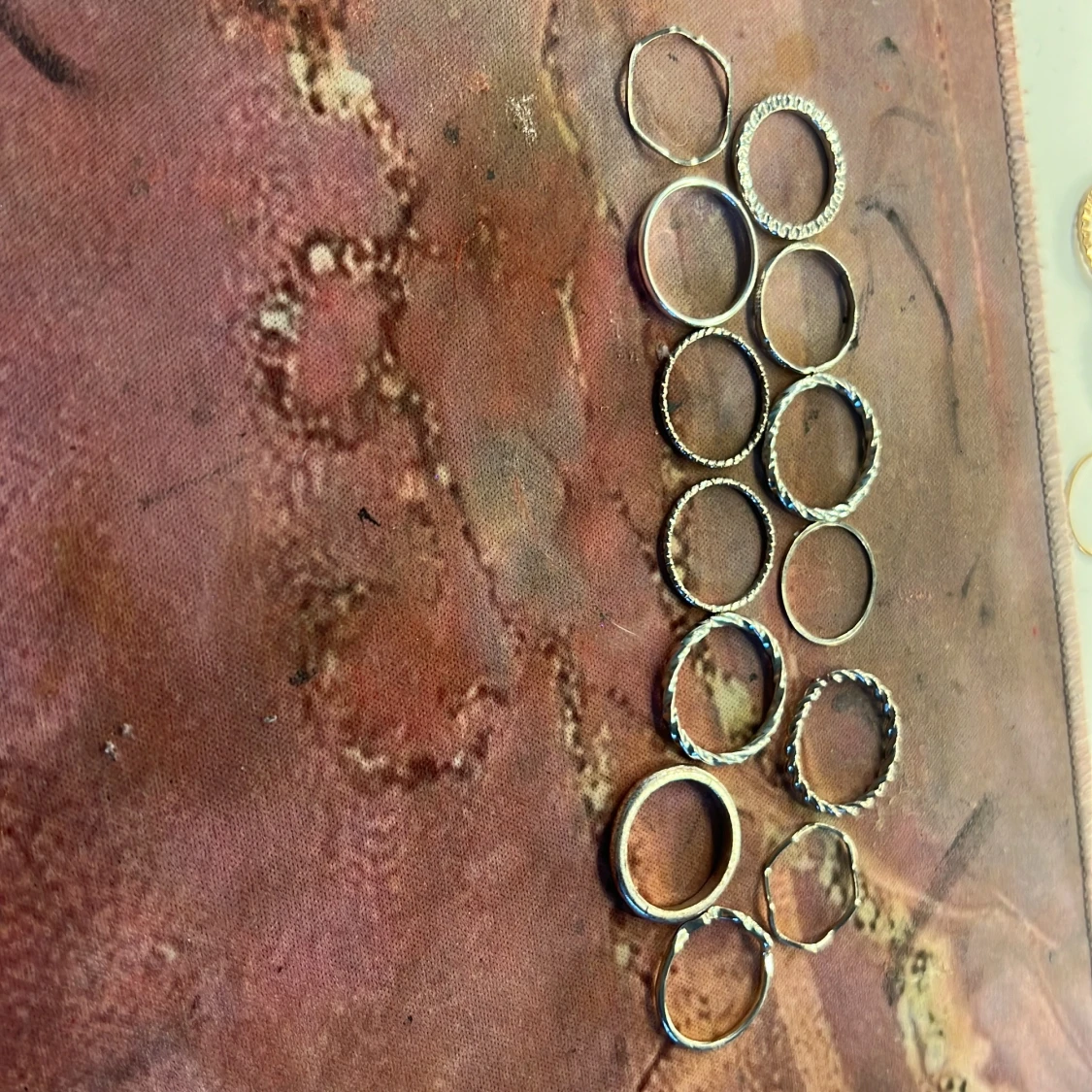 Säljer ett set med 11 stilrena ringar i silverfärg. Mix av släta och tvistade modeller, perfekta att bära tillsammans eller var för sig. Passar dig som gillar att mixa och matcha smycken för en personlig look.