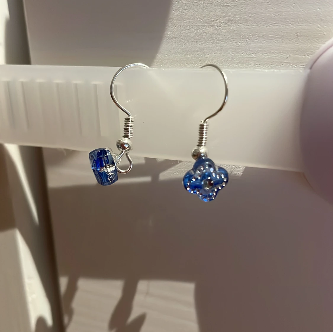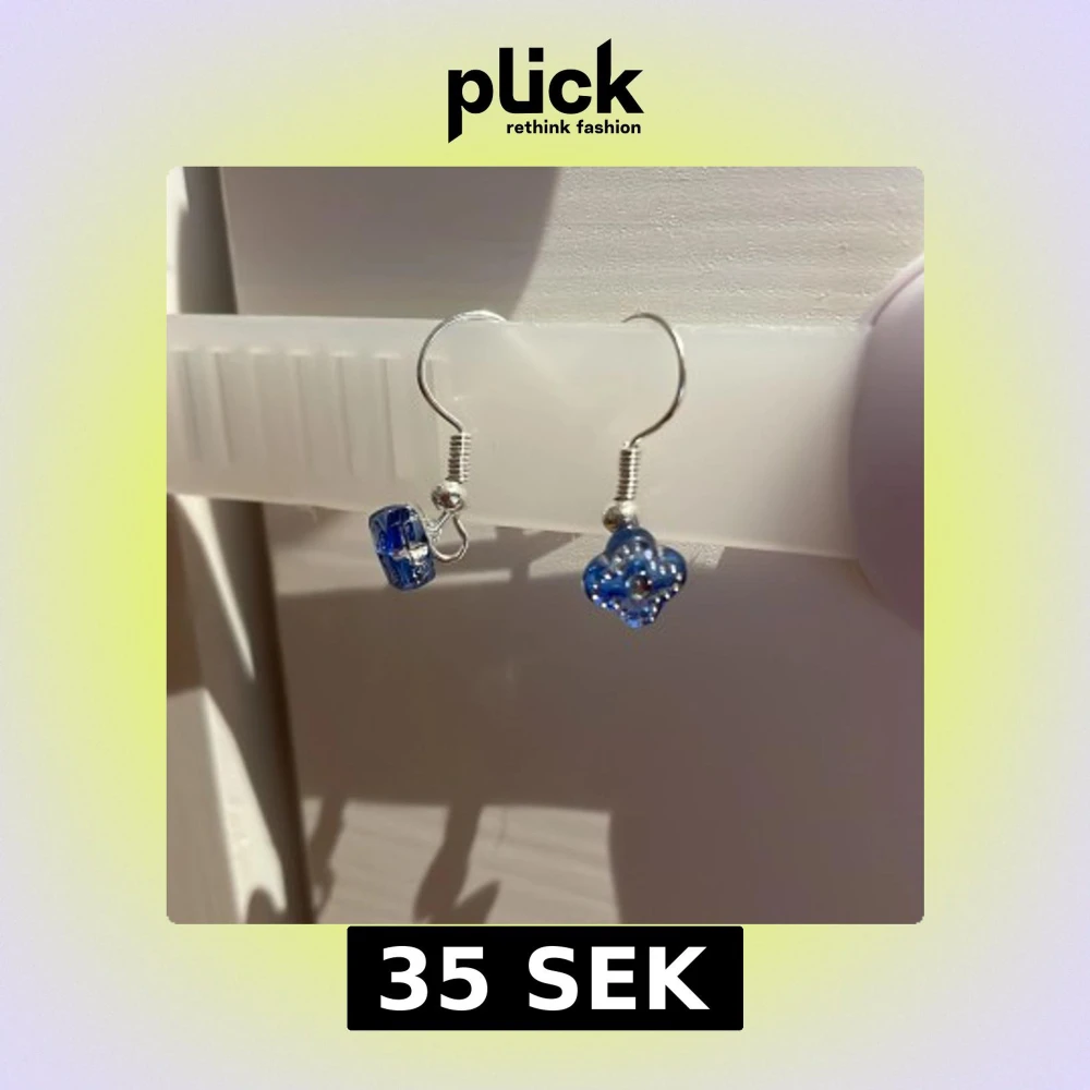 Säljer ett par egentillverkade örhängen med blåa blommor på 💕