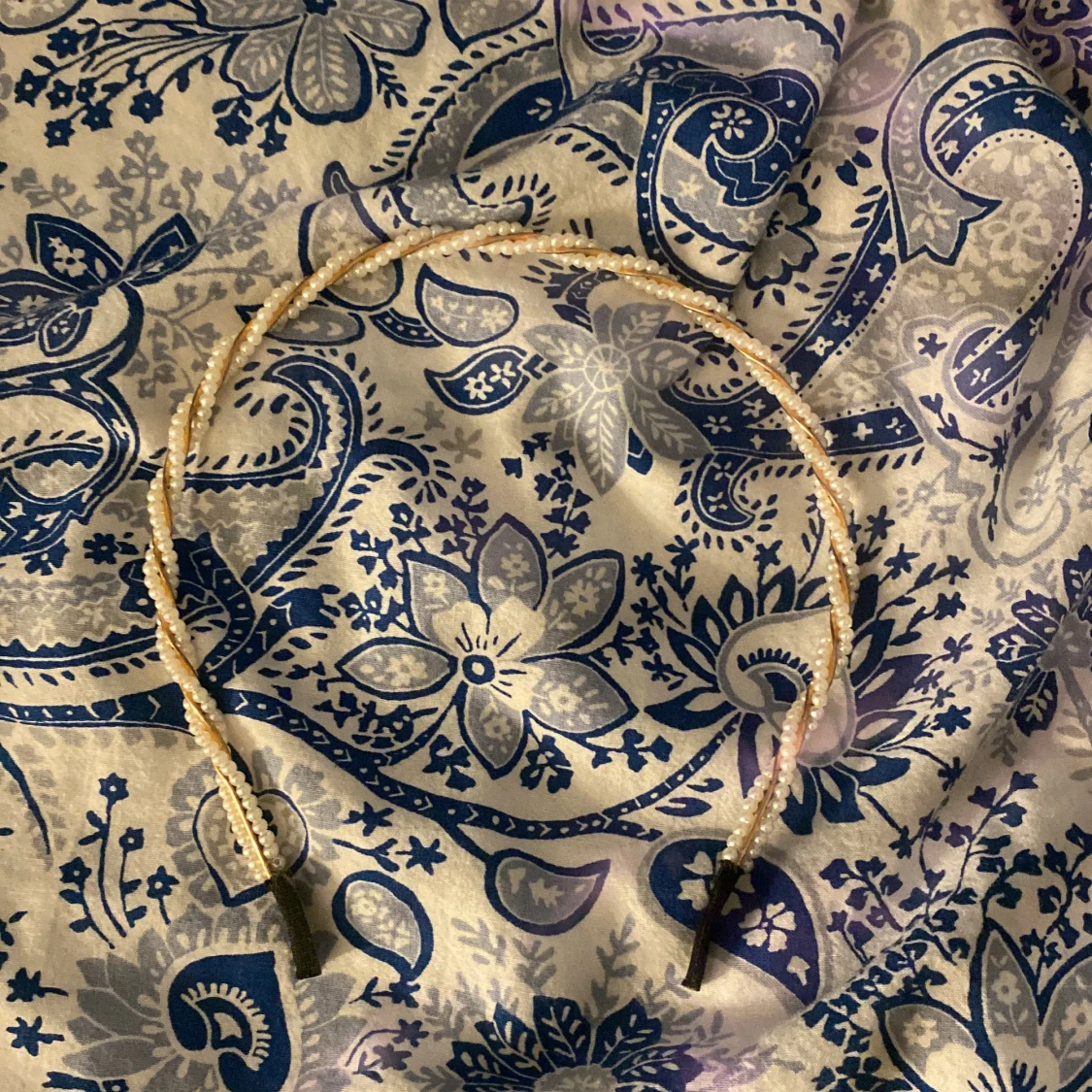 Snyggt gult vit diadem med små vita pärlor. Perfekt accessoar för dig som gillar en stilren men ändå edgy look. Diademet är tunt och lätt, vilket gör det enkelt att matcha med andra smycken.