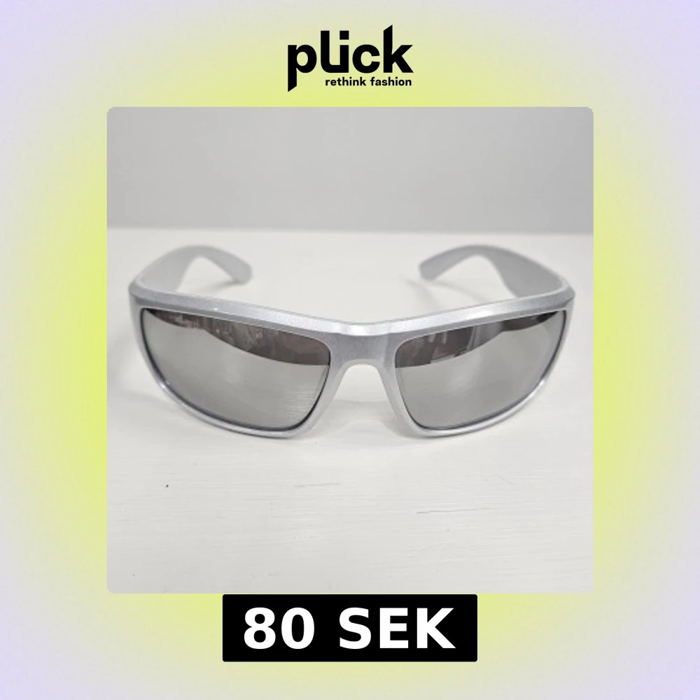 Coola solglasögon med silvrigt båge och spegelblanka linser. Modellen har en sportig, svepande form som täcker bra runt ögonen. Perfekta för dig som gillar en futuristisk look och vill sticka ut.