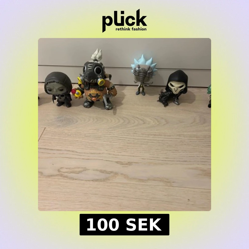 Samling av Overwatch Funko Pop-figurer, inklusive karaktärer med detaljerade dräkter och unika tillbehör. Perfekt för fans av spelet som vill utöka sin samling. 100 kr st