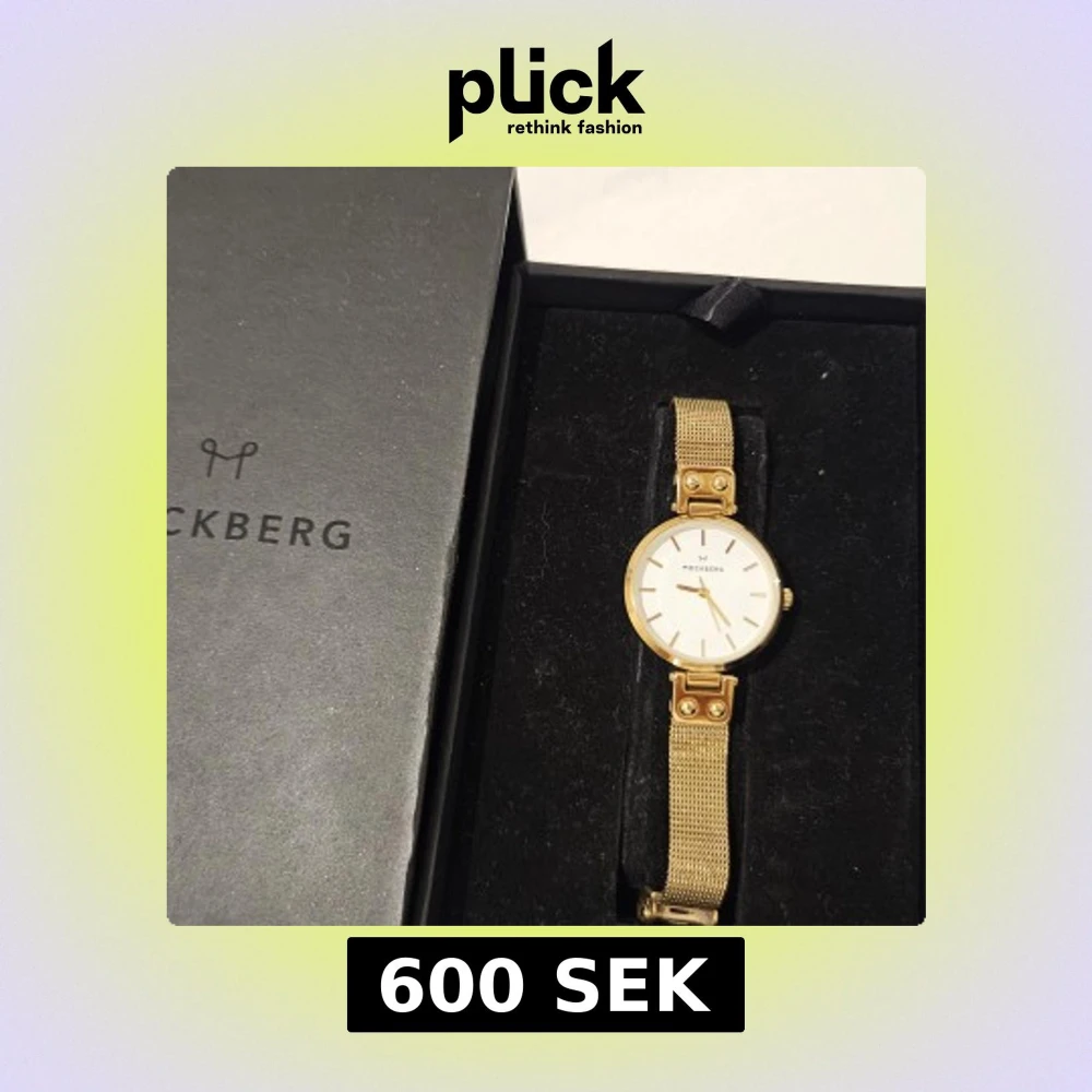 Snygg och stilren klocka från Mockberg med guldigt mesh-armband och vit urtavla. Klockan har minimalistisk design med tunna visare och index, samt ett elegant spänne. Boetten är i rostfritt stål och klockan levereras i originalask med manual. Justerbar band.