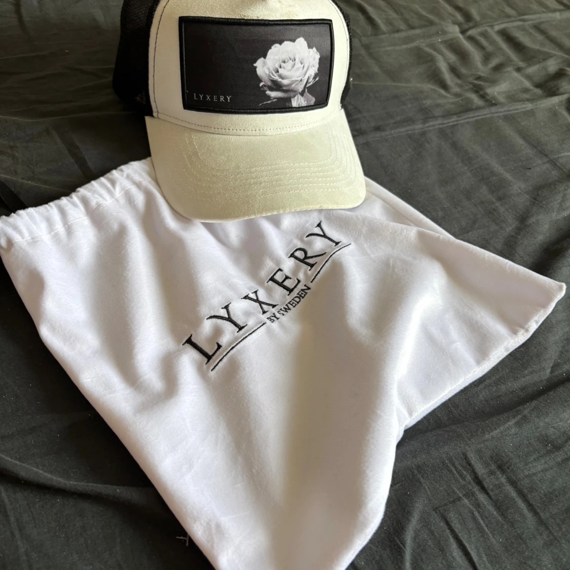 Snygg svartvit keps från Lyxery By Sweden med en stor patch framtill som har en vit ros på svart bakgrund. Kepsen har mesh på baksidan och böjd skärm. Perfekt för dig som gillar stilrena detaljer och vill sticka ut med en unik design.