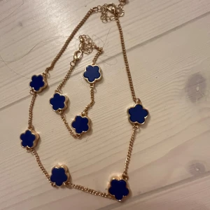 Elegant halsband med blå blommor i guldinfattning. Kedjan är tunn och smidig, vilket ger ett stilrent intryck. Perfekt för att lägga till en färgklick till din outfit.