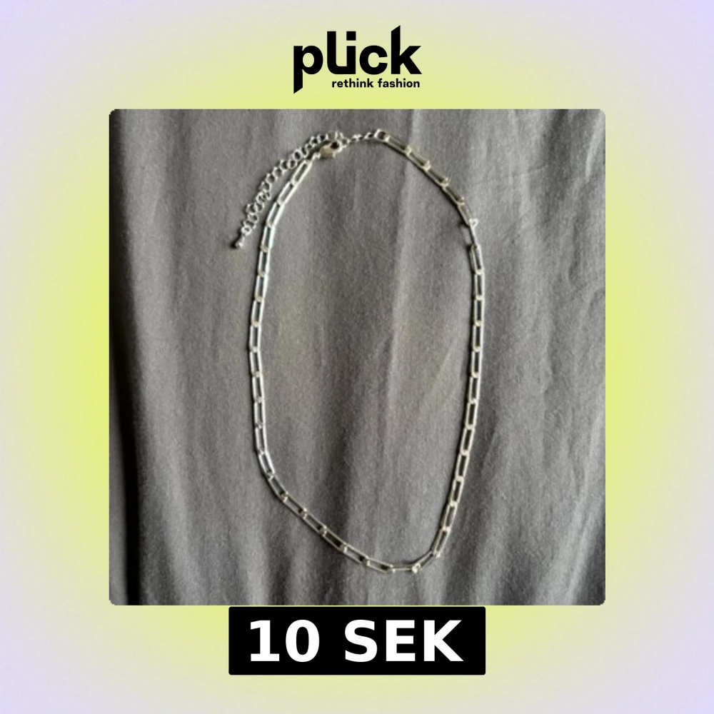 Elegant silverfärgat halsband med rektangulära länkar och justerbar kedja. Perfekt för att lägga till en stilren touch till din outfit. EJ ÄKTA!!