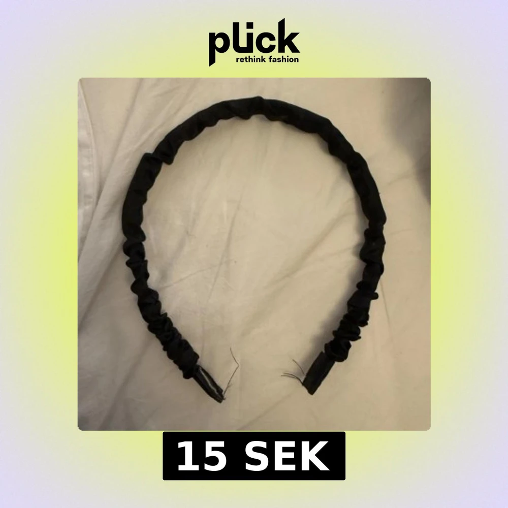 Säljer ett enkelt svart diadem i tyg. Perfekt för att hålla håret på plats med stil. Diademet har en mjuk och flexibel passform.