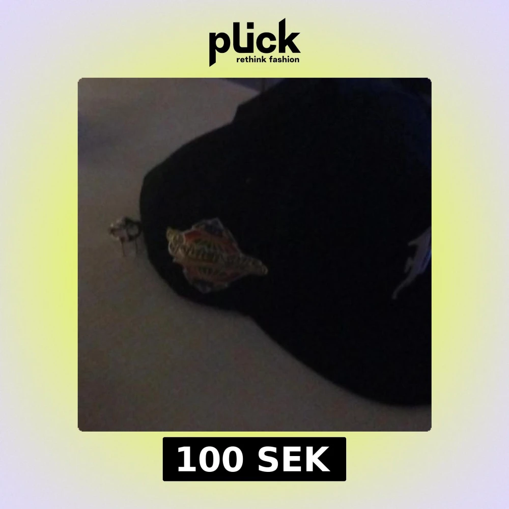 Säljer en svart keps med en vit broderad bokstav på framsidan och ett färgglatt märke på sidan. Klassisk böjd skärm och justerbar passform. Perfekt accessoar för en sportig stil.använts 1 gång