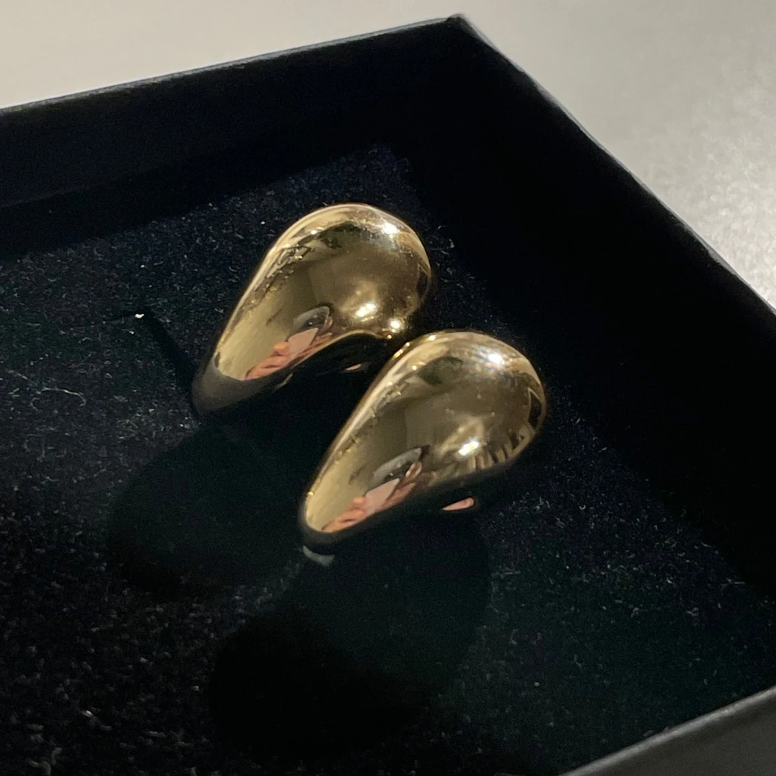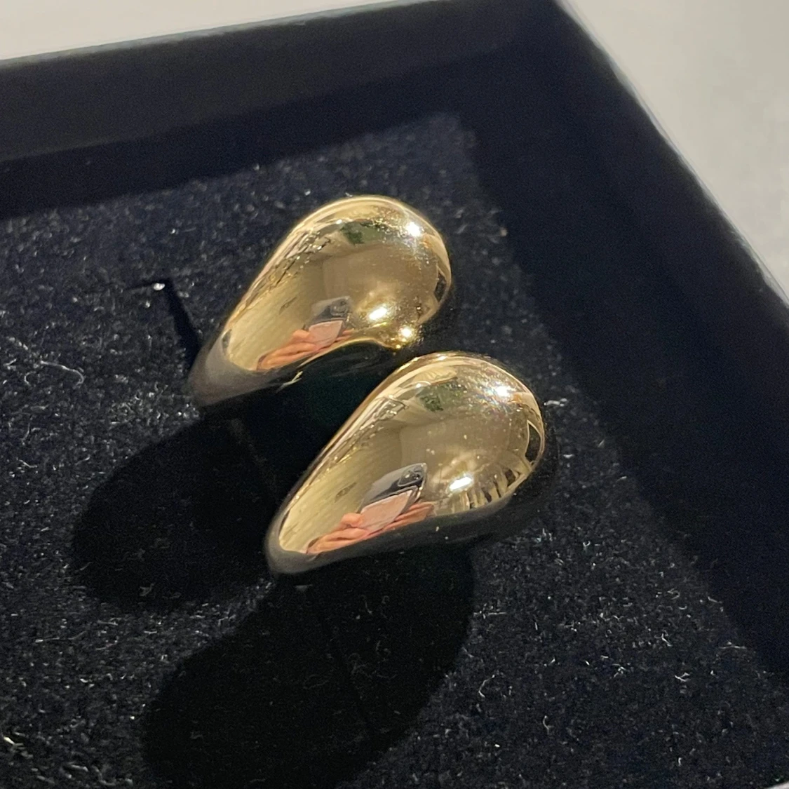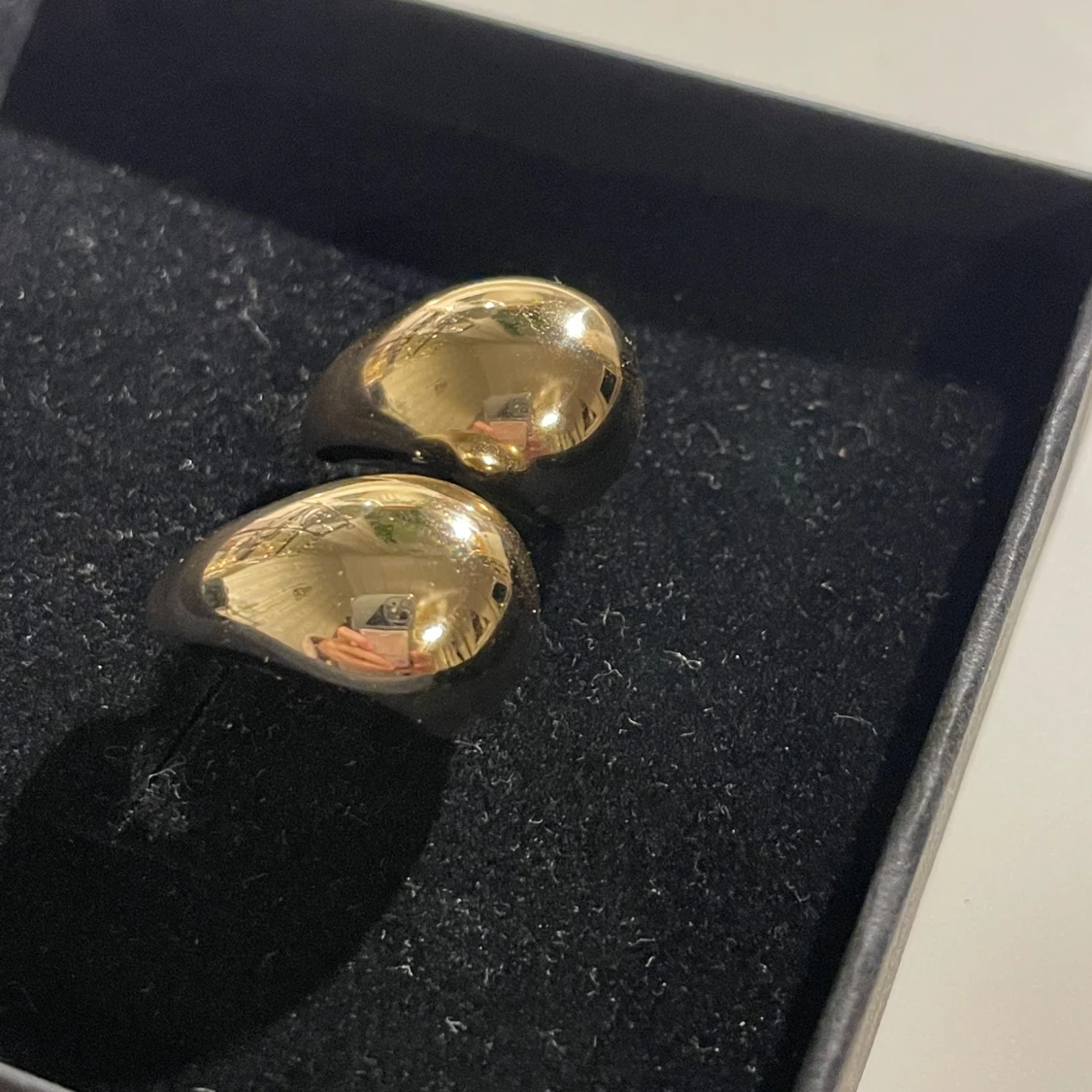 Snygga och moderna örhängen i en unik form. De är i en glänsande guldig färg och passar perfekt för att ge en elegant touch till din stil. Perfekta för både vardag och speciella tillfällen.