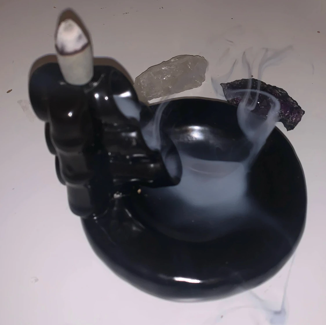 En fin svart rökelsehållare med 10 lavendeldoftande rökelser också! Så fin och härlig dekoration till rummet!