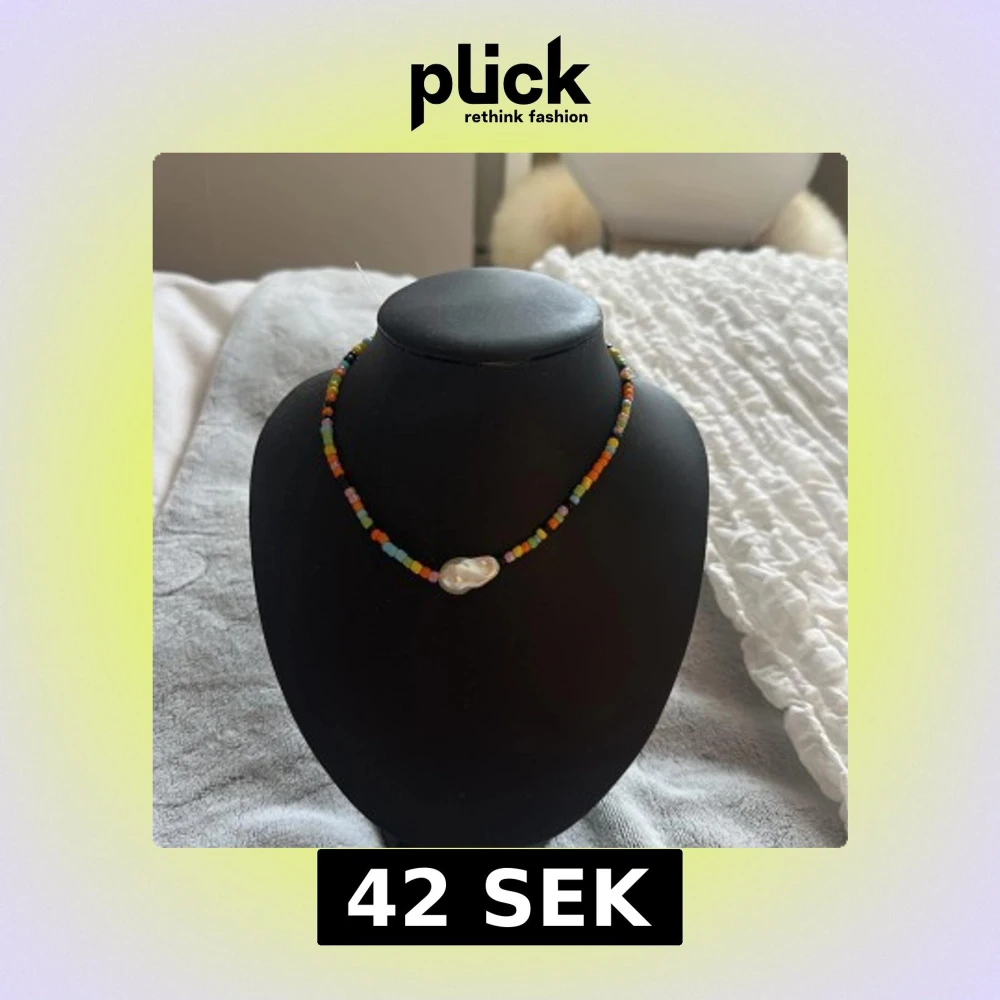 Ett halsband med små, färgglada pärlor i olika nyanser och en större vit pärla i mitten. Perfekt för att ge en lekfull touch till din stil.