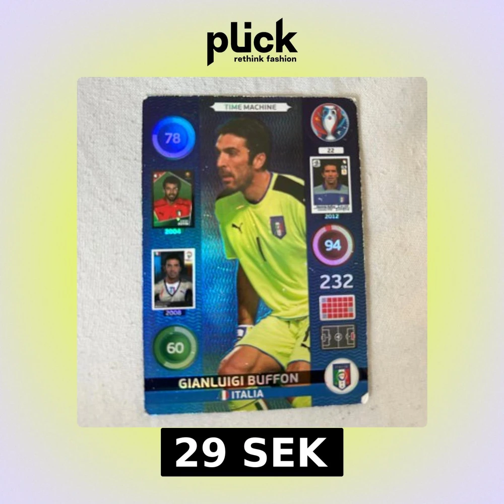 Samlarbild med Gianluigi Buffon, en av Italiens mest legendariska målvakter. Kortet visar Buffons utveckling genom åren med bilder från olika EM-turneringar. Perfekt för fotbollsfans och samlare!