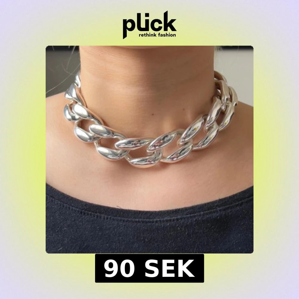 Stort och chunky halsband med breda, ovala länkar i silverpläterad plast. Statement piece som sitter tajt runt halsen och ger en cool och trendig vibe. Perfekt för att lyfta vilken outfit som helst med en edgy touch.