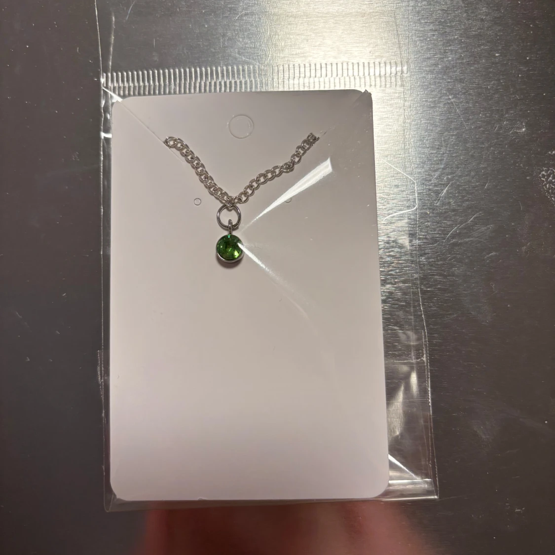 Elegant silverarmband med en grön pärla som hänge. Perfekt för att lägga till en färgklick till din outfit. Kedjan är tunn och smidig, vilket gör den lätt att bära. (