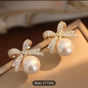 Helt glänsande strass infälld rosett Faux Pearl Decor Dingla örhängen Elegant stil Delikat kvinnlig present