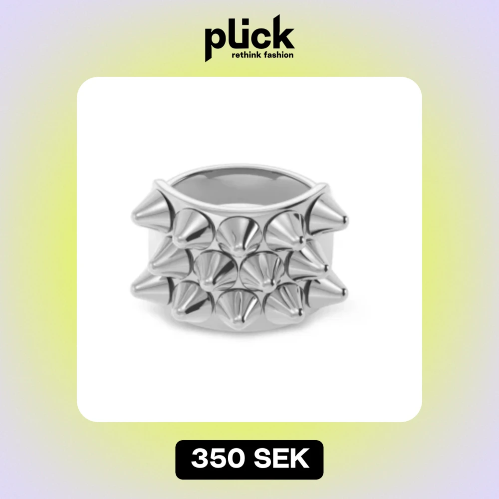 Edblad ring - Cool bred ring i blankt silverfärgat material med flera spetsiga nitar runt hela ringen från Edblad. Ger en edgy och unik look, perfekt för dig som vill sticka ut med accessoarerna. Pris går att diskuteras och hör av er om fler bilder eller om ni har några frågor. Tror storlek 18,50
