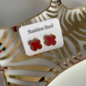 Fina klöver örnhänge, röd. Guldpläterat. Finns tillhörande halsband och armband bland mina annonser. Fraktas för 15 kr